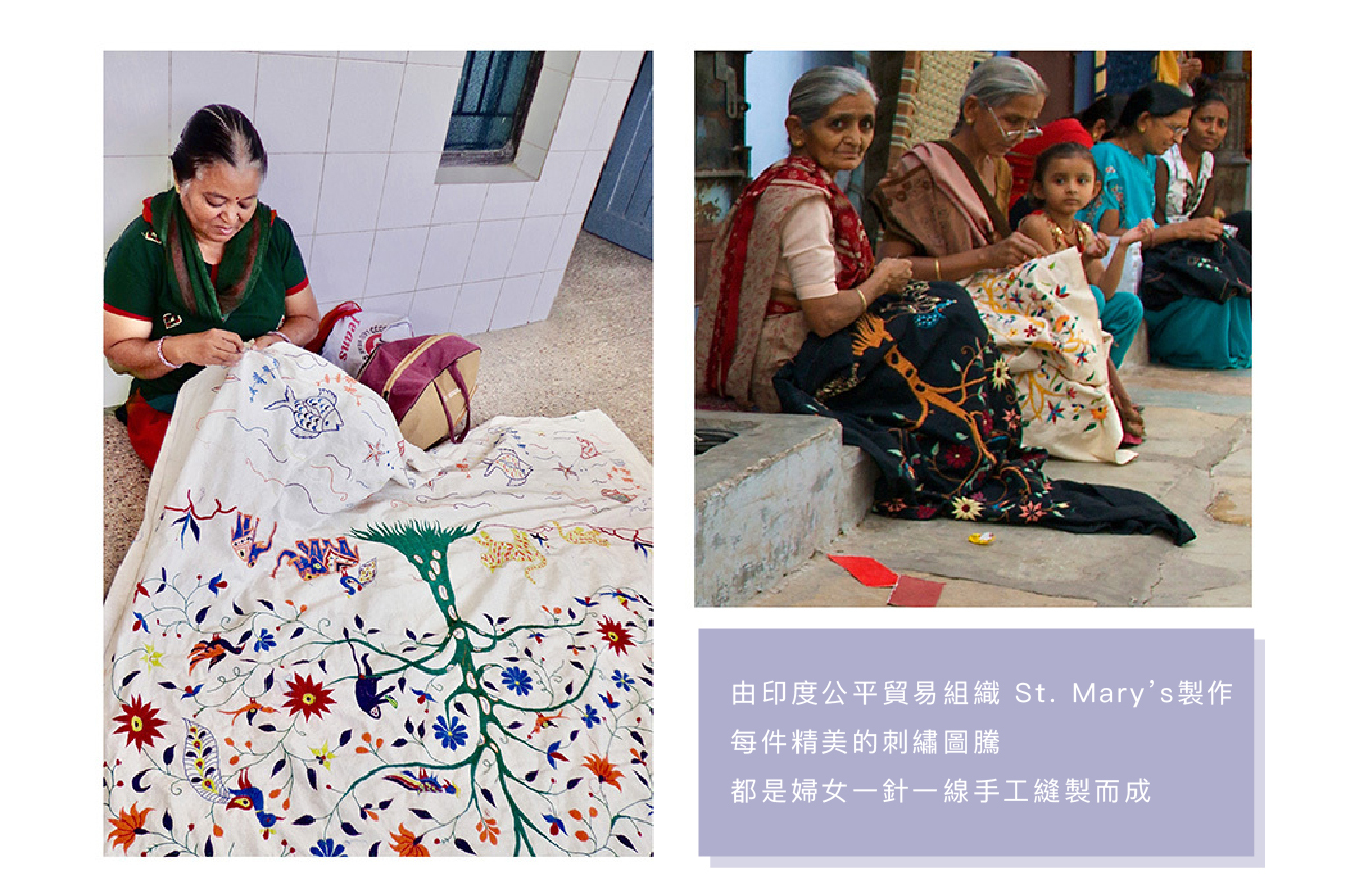 來自印度公平貿易組織婦女一針一線的手繡之作,時間是最美的禮物。