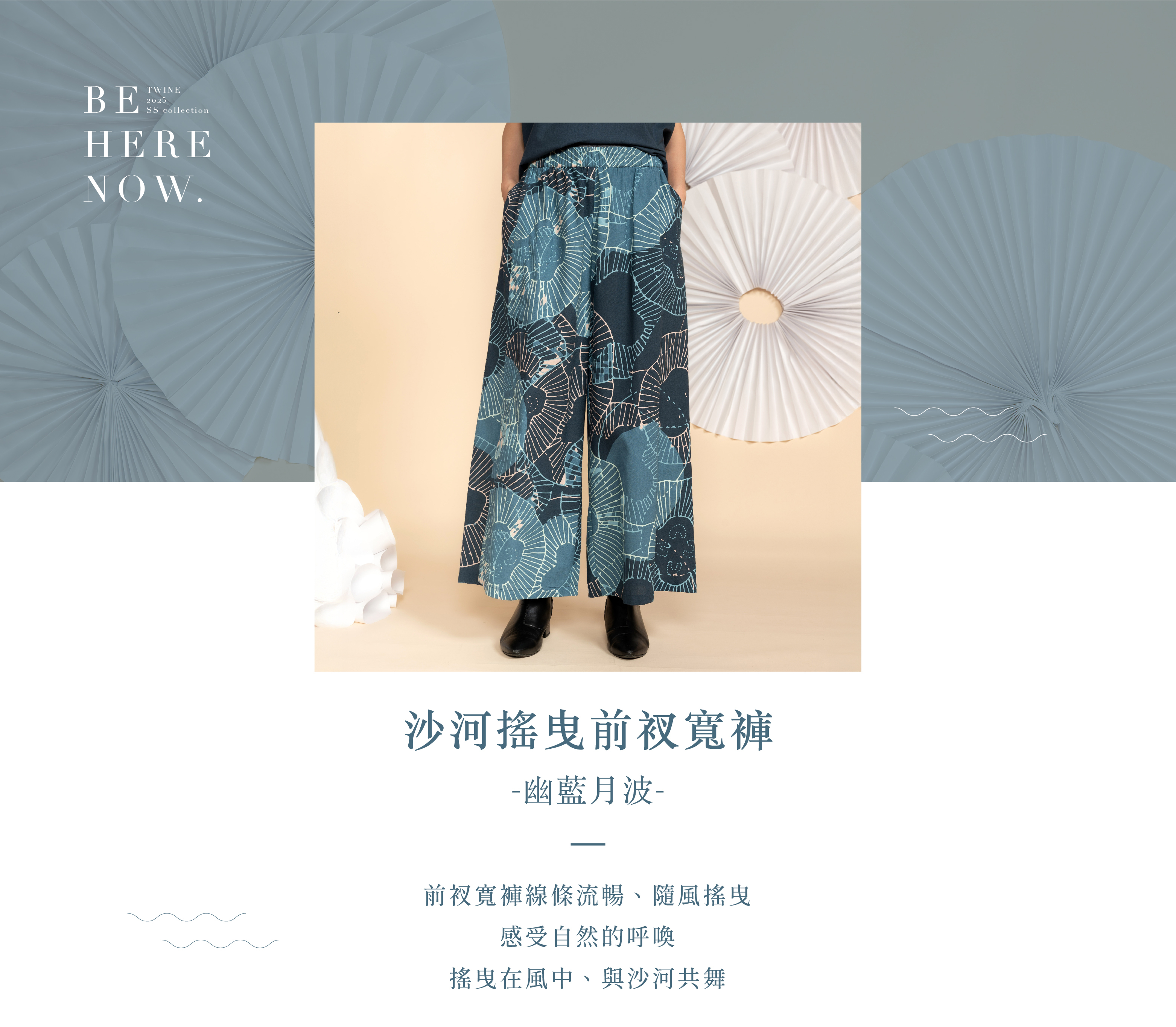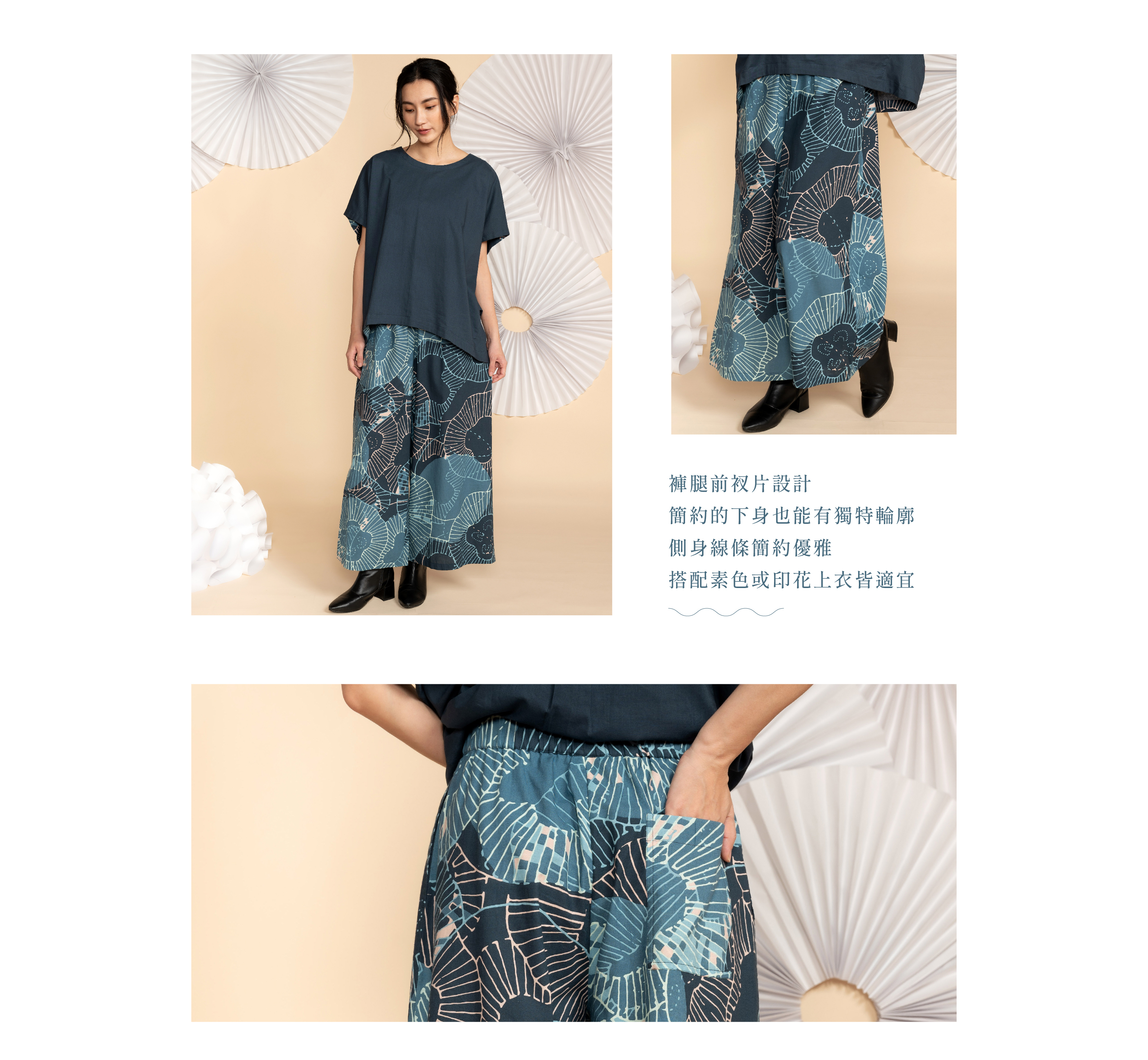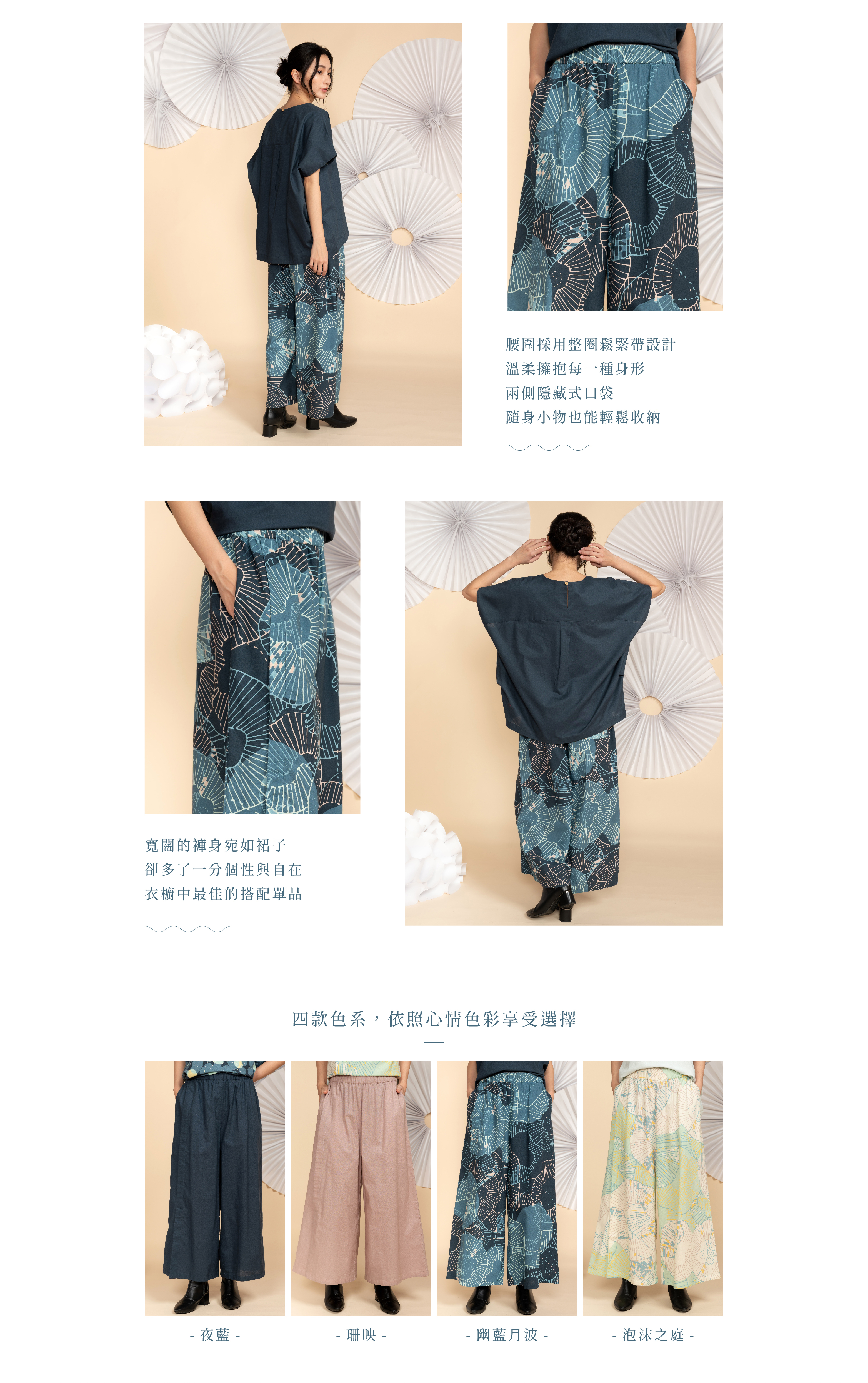 Flowing Front-Slit Wide Pants-Moonlit Blue Waves