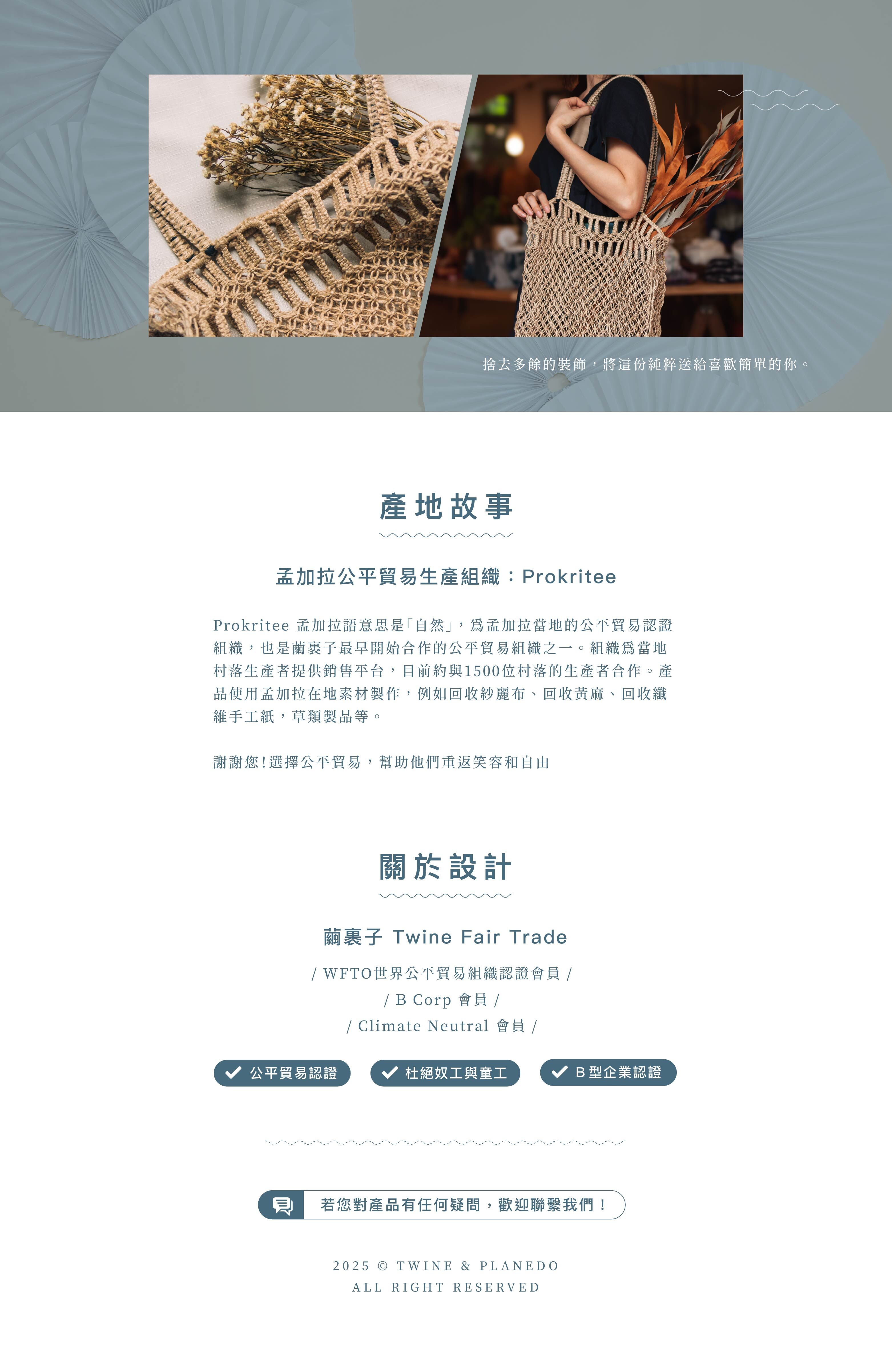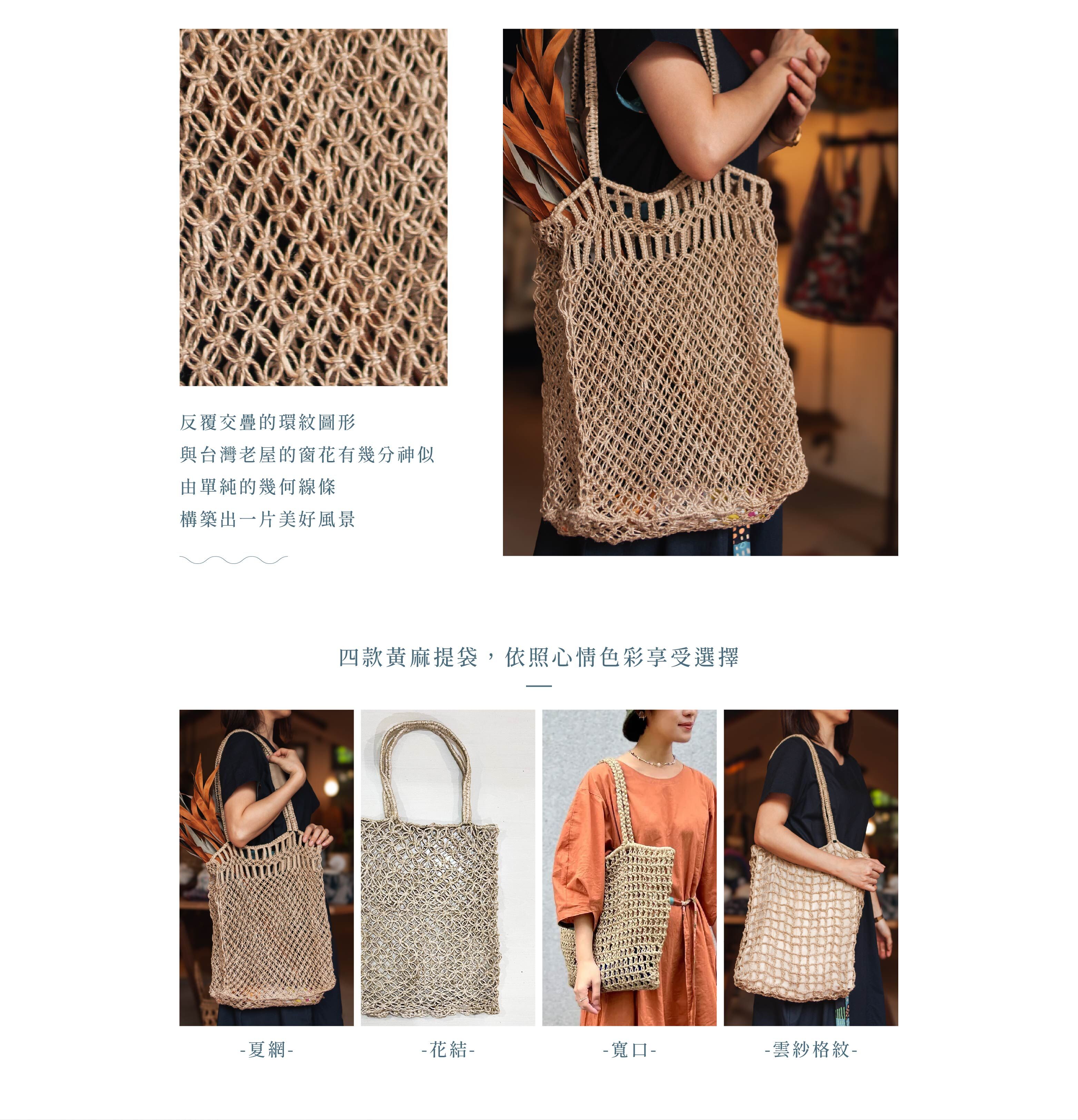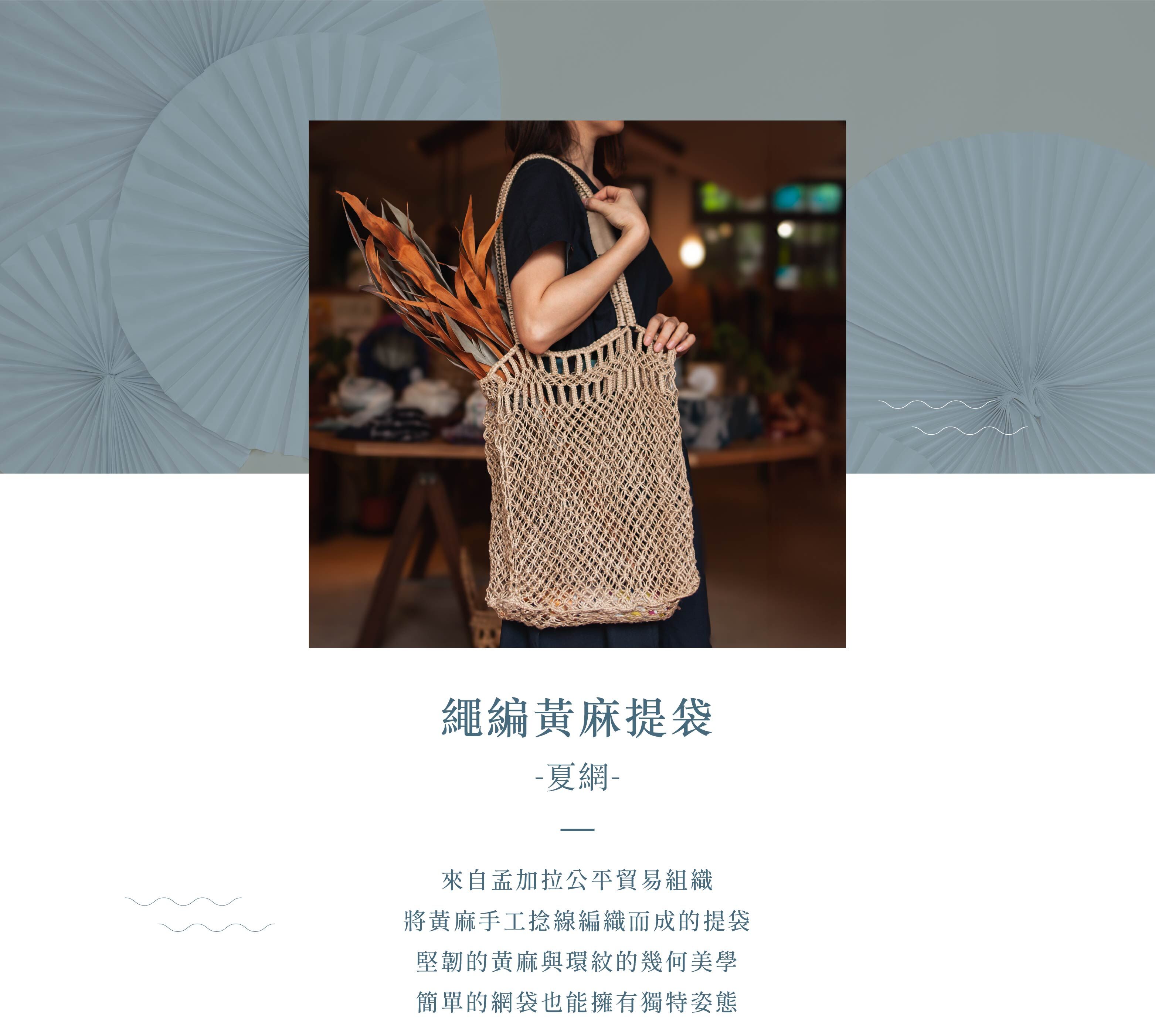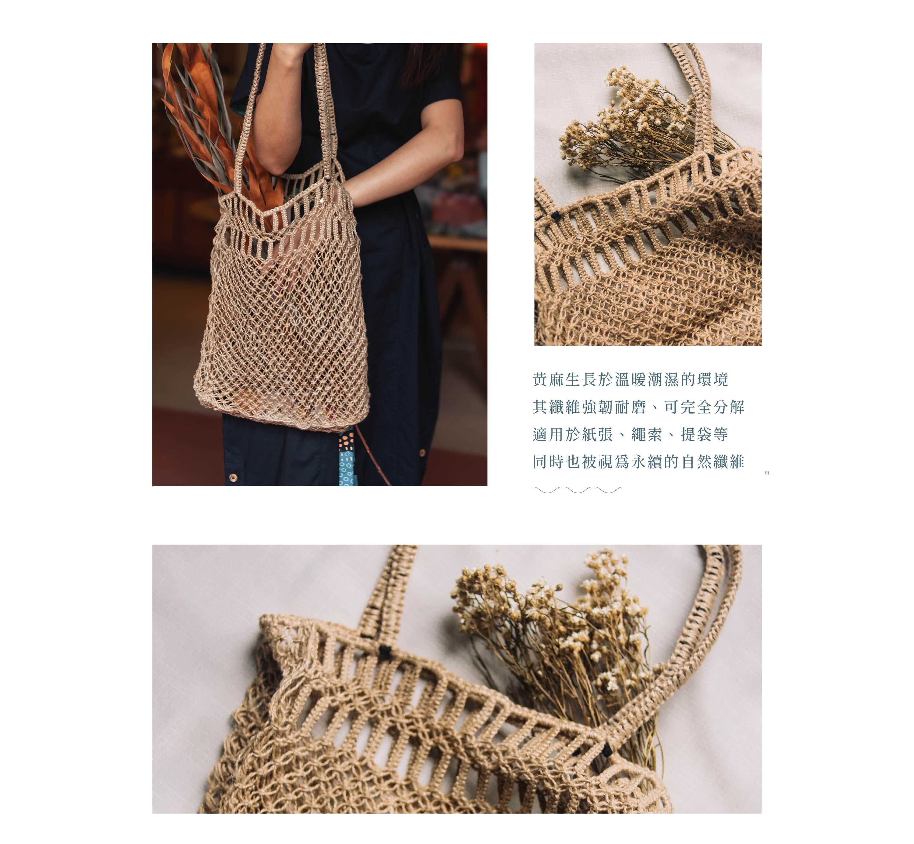This net bag is handwoven using jute yarn from Bangladesh's fair trade organization. The durable jute combined with a geometric aesthetic of circular patterns gives this simple net bag a unique character.