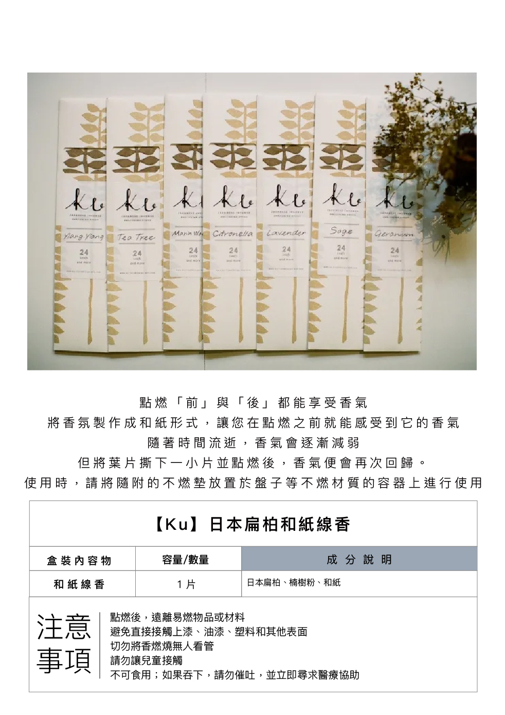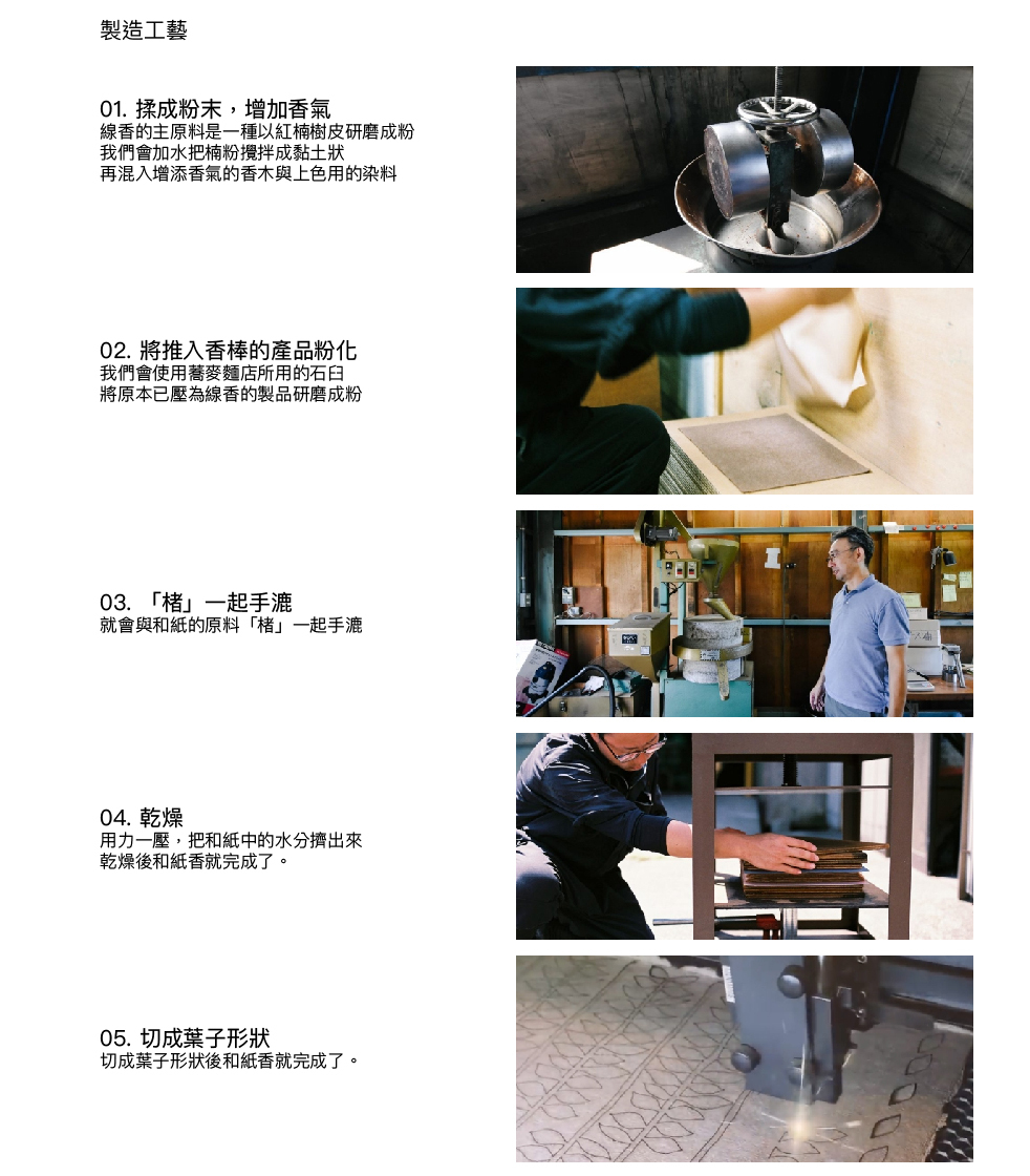 可以將它掛在牆上,為空間增添香氣與美感;也可以夾在信中,將香氣傳遞給重要的人;或是點燃後享受它徐徐飄散的香氣。薰香與和紙的結合,創造出一種貼近生活的新香氛形式。