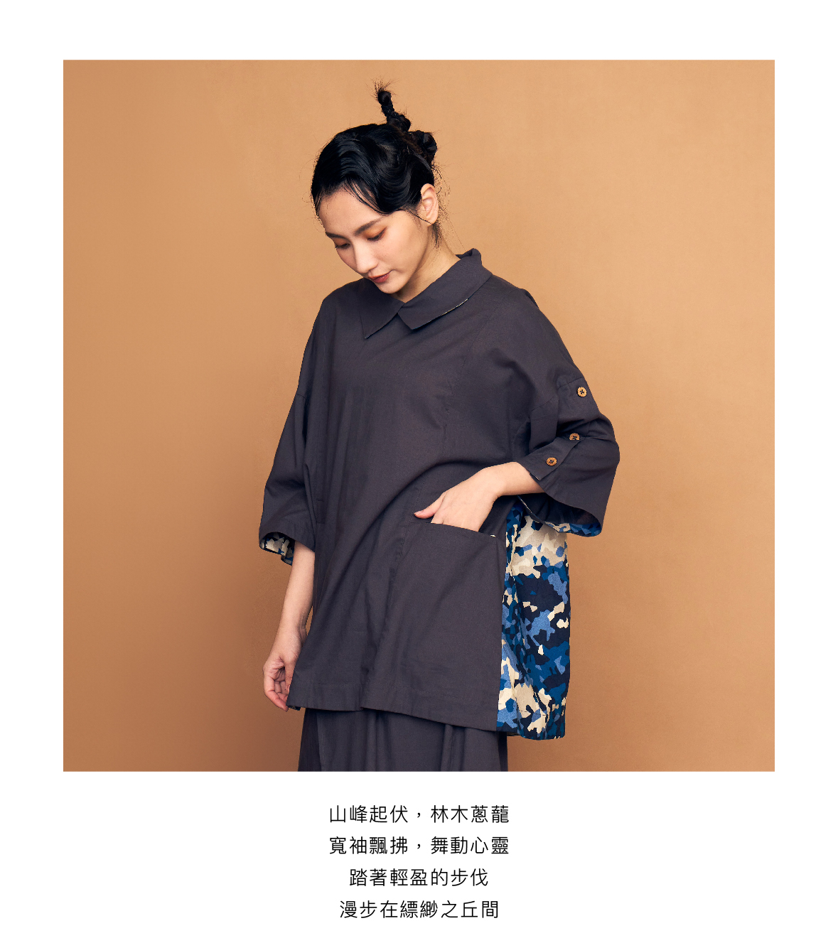 Wearing this top, the neutral design sets no limits. Wandering in the misty hills, feeling the natural aura enveloping. Drifting with the wind, dancing with nature.