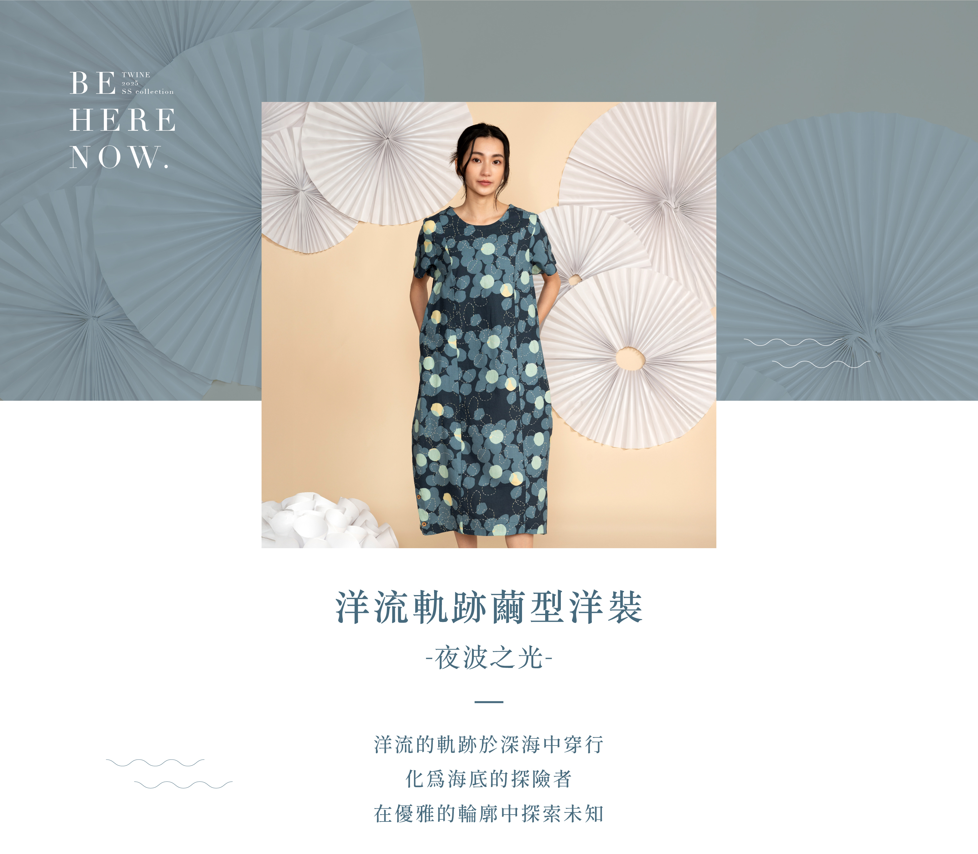 Ocean Current Path Cocoon Dress_Light of Night Waves