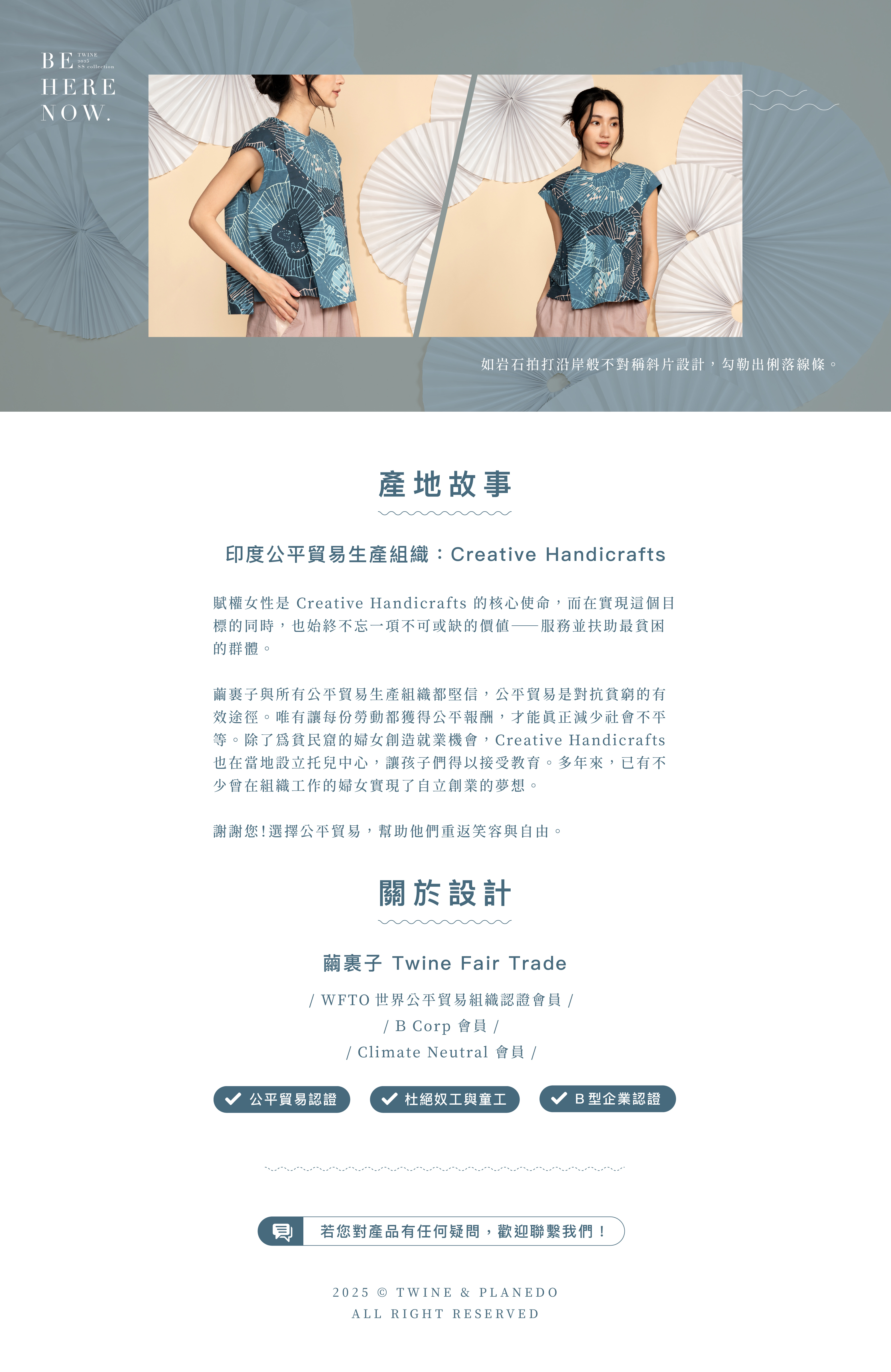 Rippling Shore Pleated Top - Moonlit Blue Waves