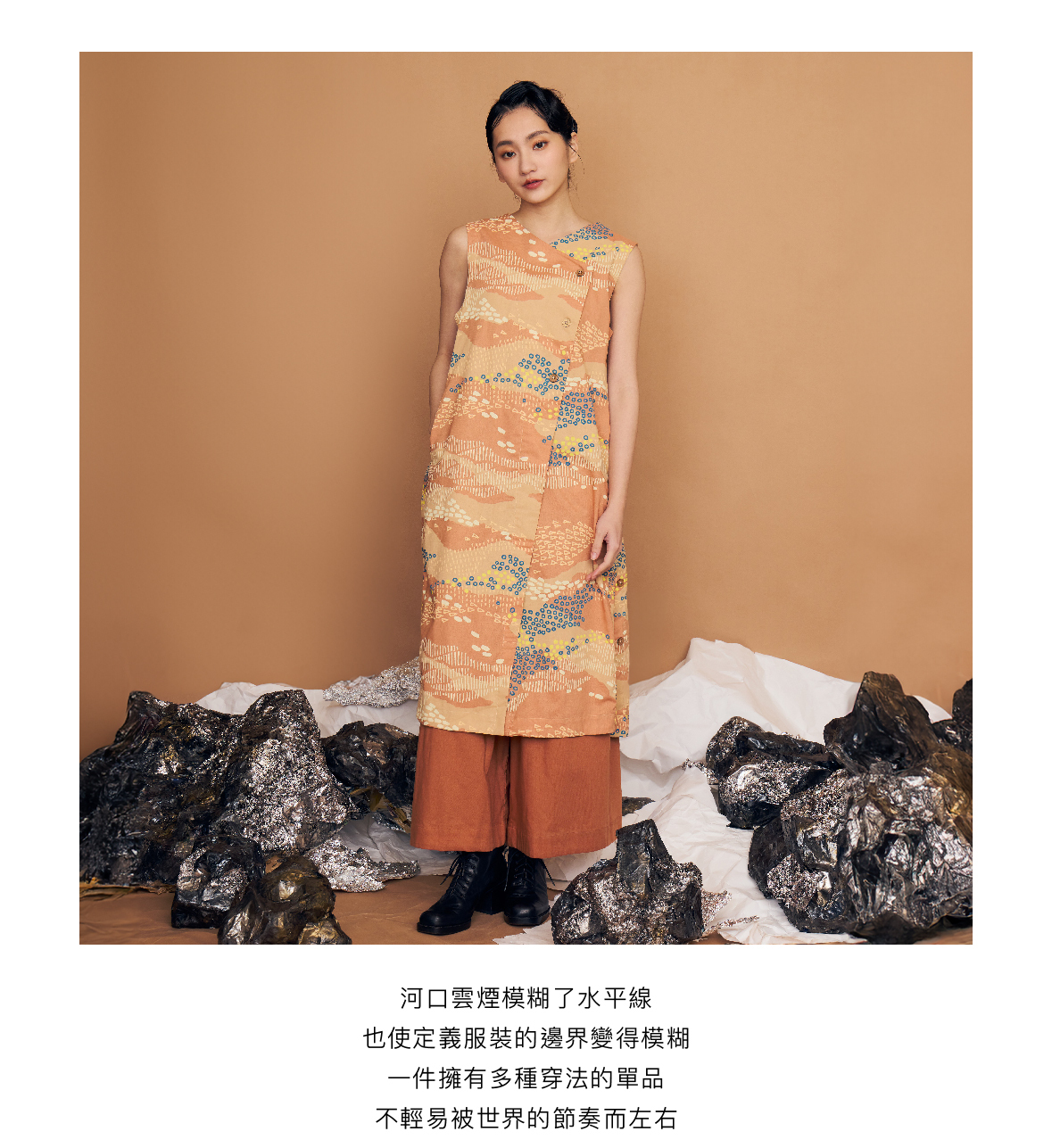 A Two Way Sleeveless Dress hiding infinite possibilities, featuring a frameless design that can be worn both front and back, lightly sketching the light trajectories of the past and future.