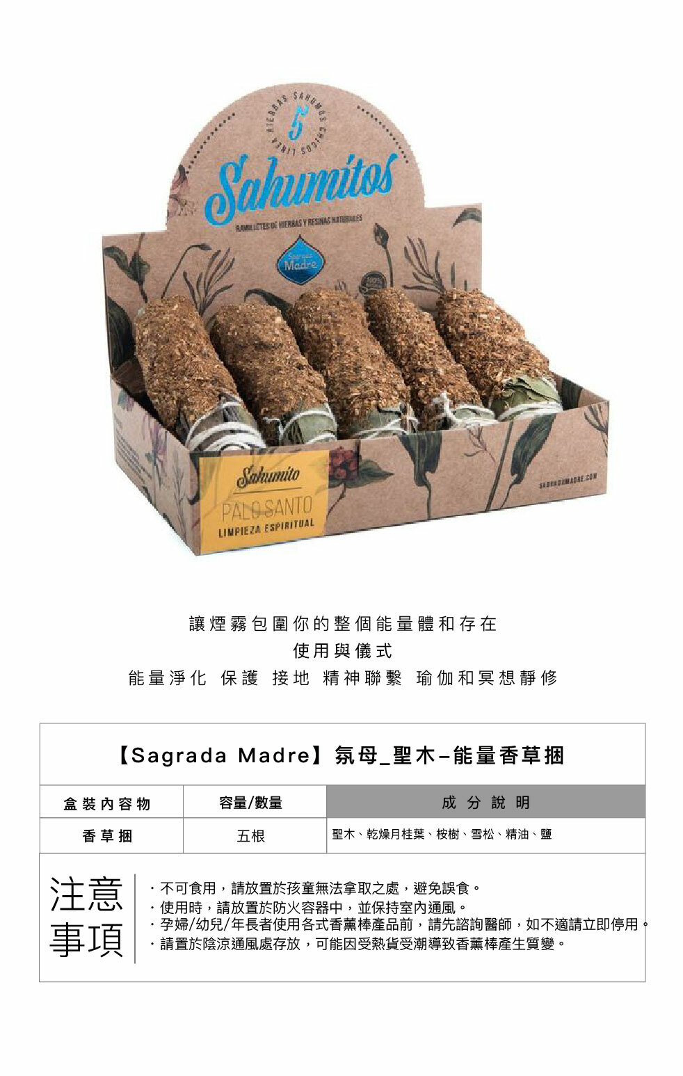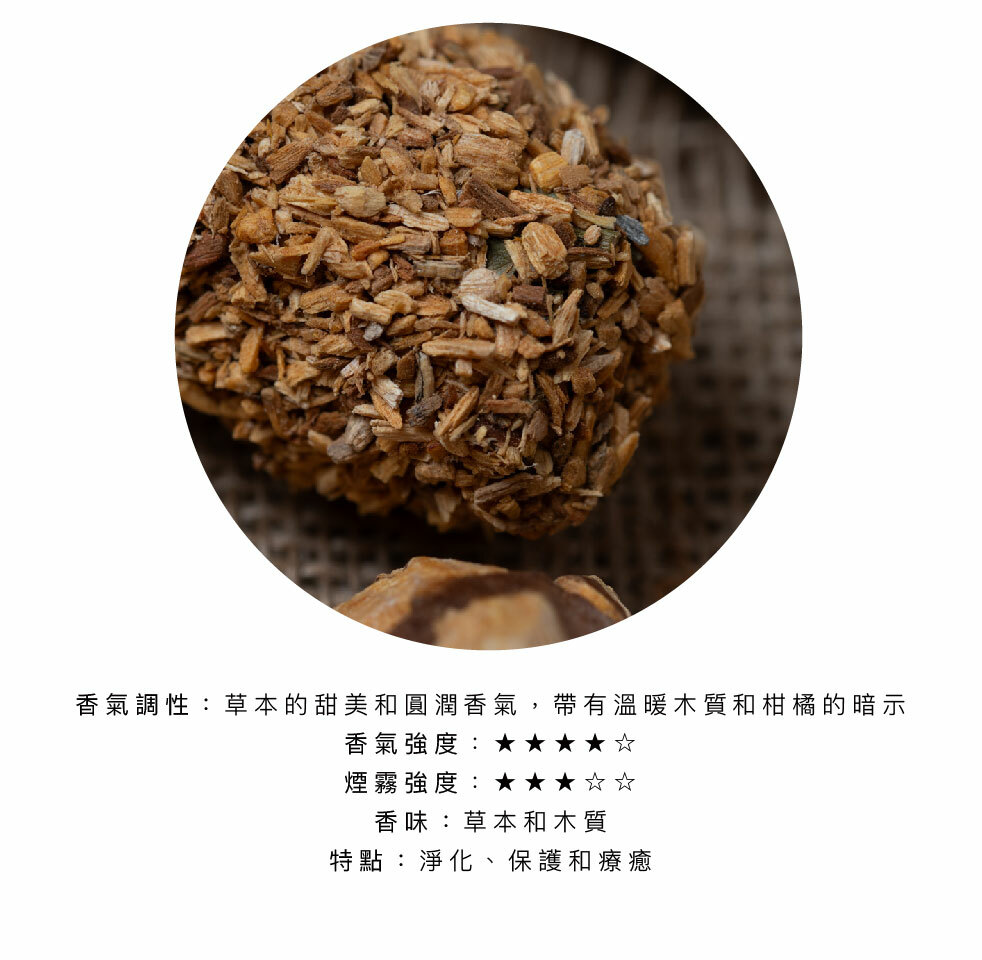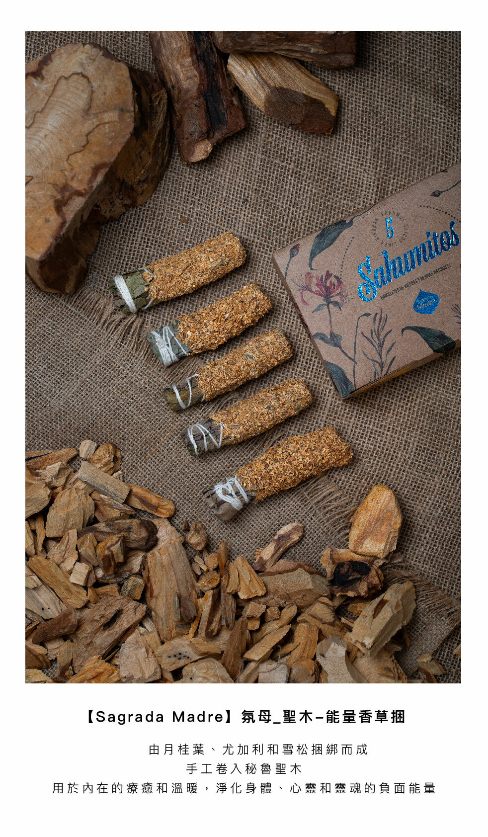 由月桂葉、尤加利與雪松綑綁而成,同時手工卷入秘魯聖木。