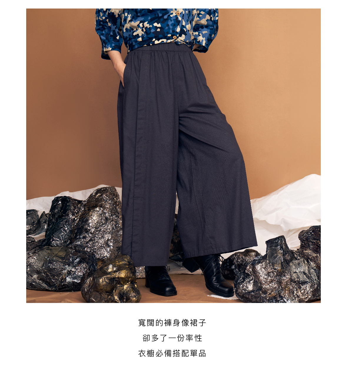 Wide pants that feel like a skirt, but with an added touch of casualness. Stripped of the excess, leaving only full comfort and ease when walking, this is a must-have item in the wardrobe.