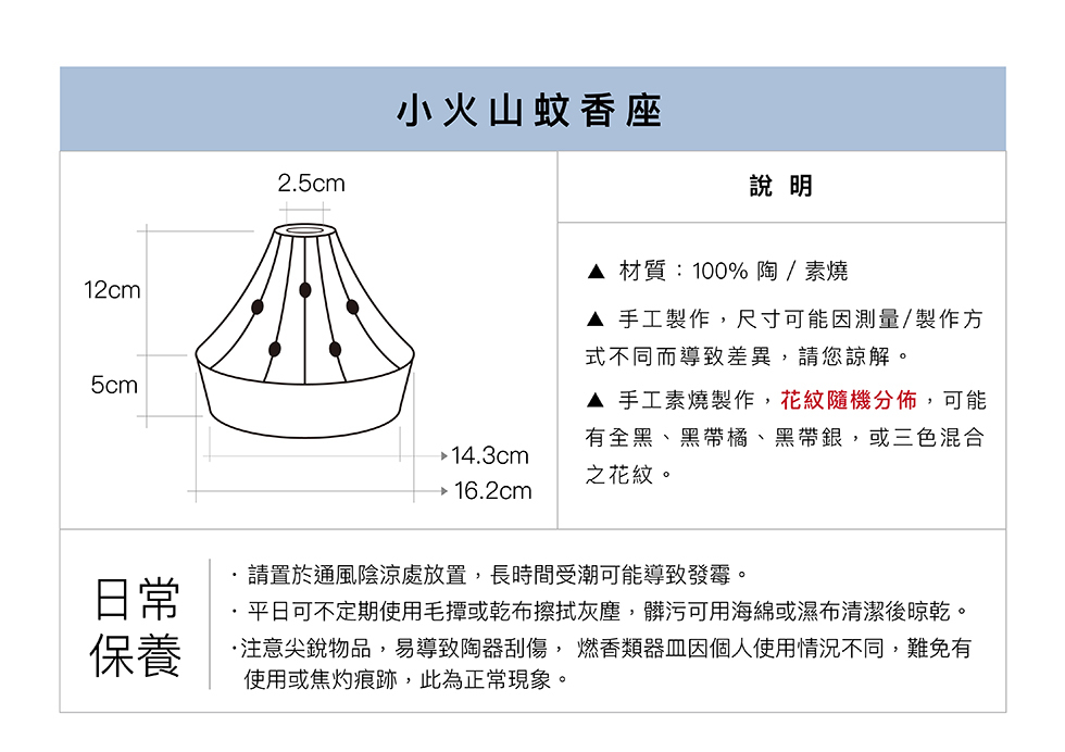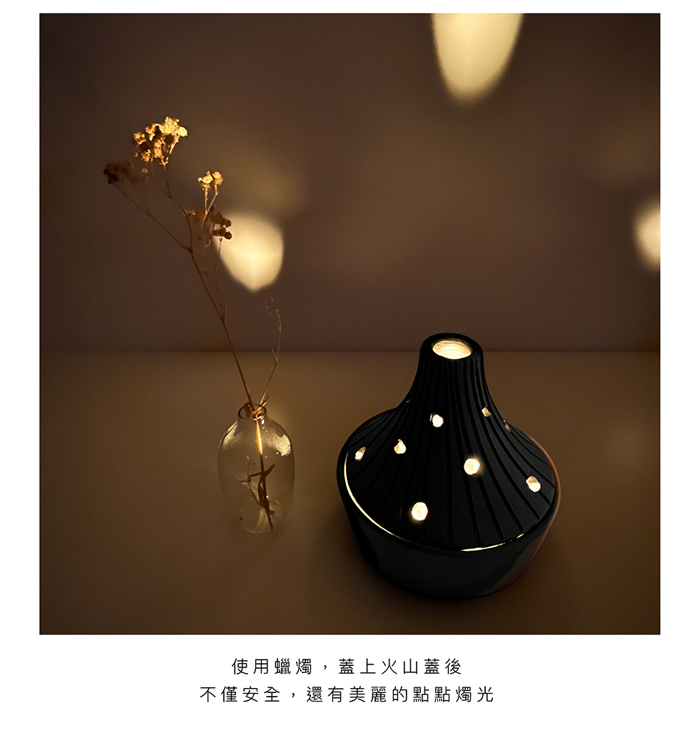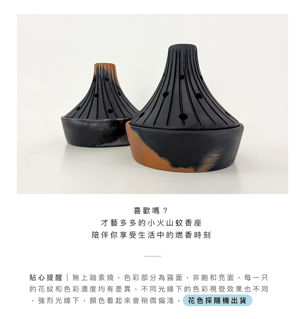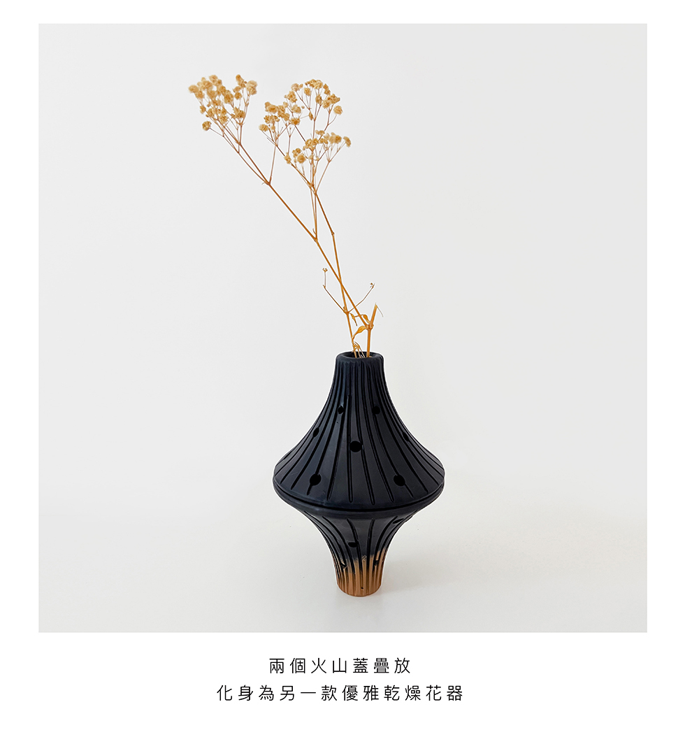 優雅可愛的小火山盤香座,煙霧自火山口或小坑洞飄出,彷彿一座具有生命力的火山,除了盤香,線香&聖木&蠟燭也適用,火山口蓋也可獨立作為乾燥花器,非常美麗, 來自孟加拉公平貿易組織的趣味想像之作。