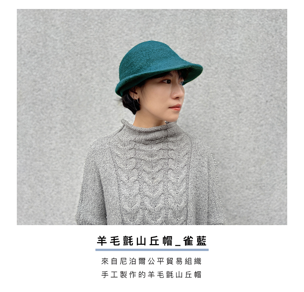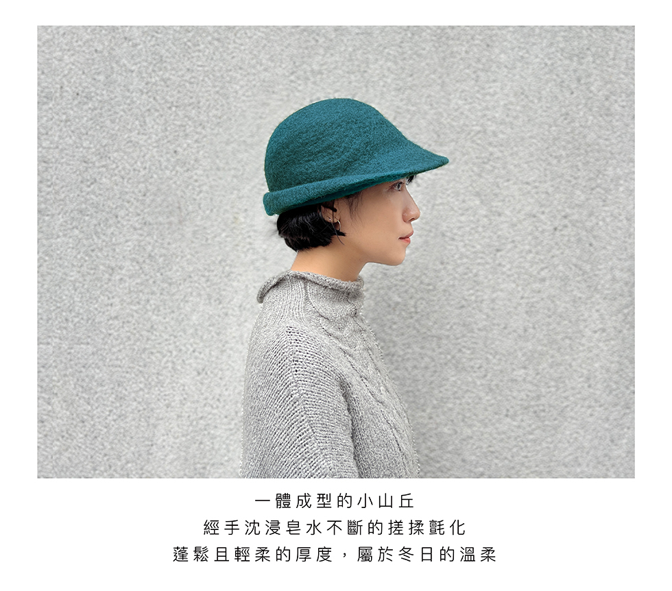 由公平貿易組織的婦女手工製作的羊毛氈帽,一體成型的簡約帽型,蓬鬆而輕柔的厚度,屬於冬日的溫柔。