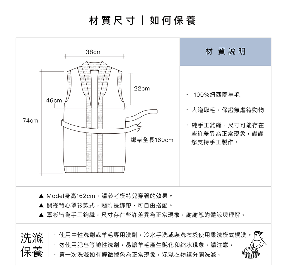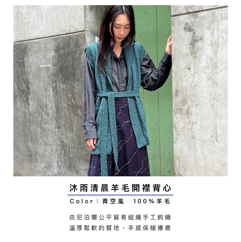 100%紐西蘭羊毛針織背心,由公平貿易組織的婦女手工鉤織,簡約的基礎色調,輕鬆搭配,為冬日的冷冽捎來一抹溫暖。