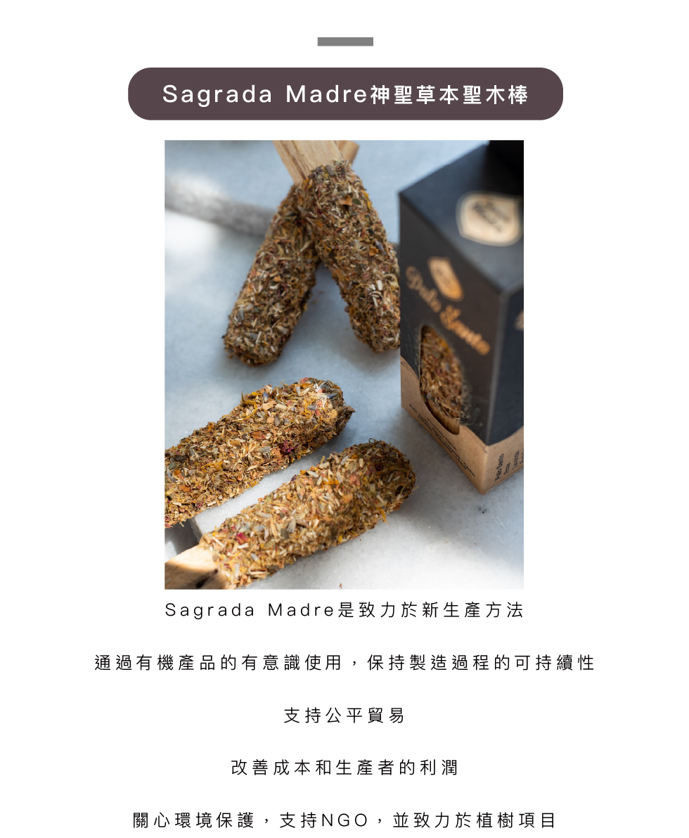 永續栽種秘魯聖木裹上玫瑰、薰衣草、雪松、尤加利、橙子、月桂等花草植物。