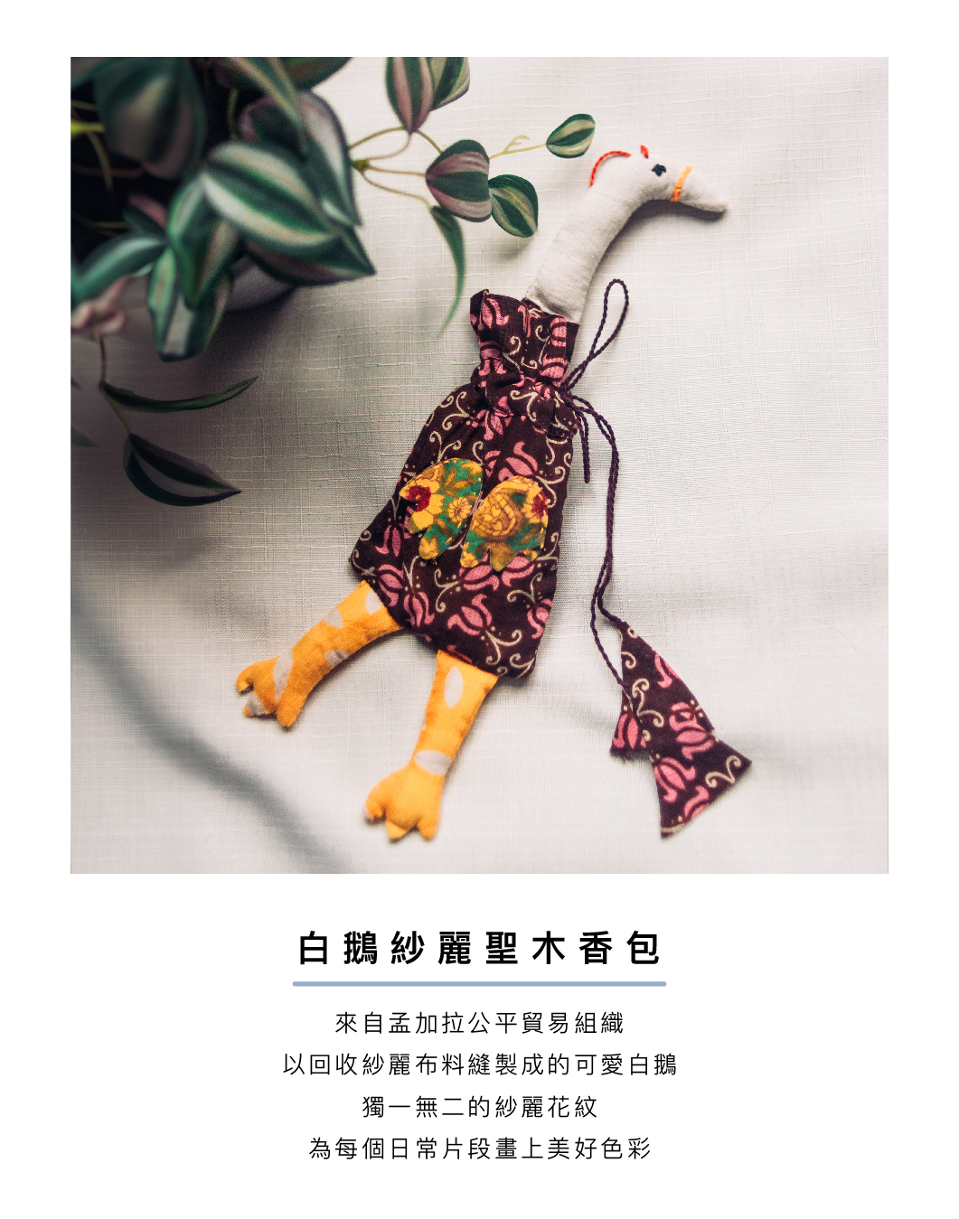 來自孟加拉公平貿易組織以回收紗麗布料縫製成的可愛白鵝,