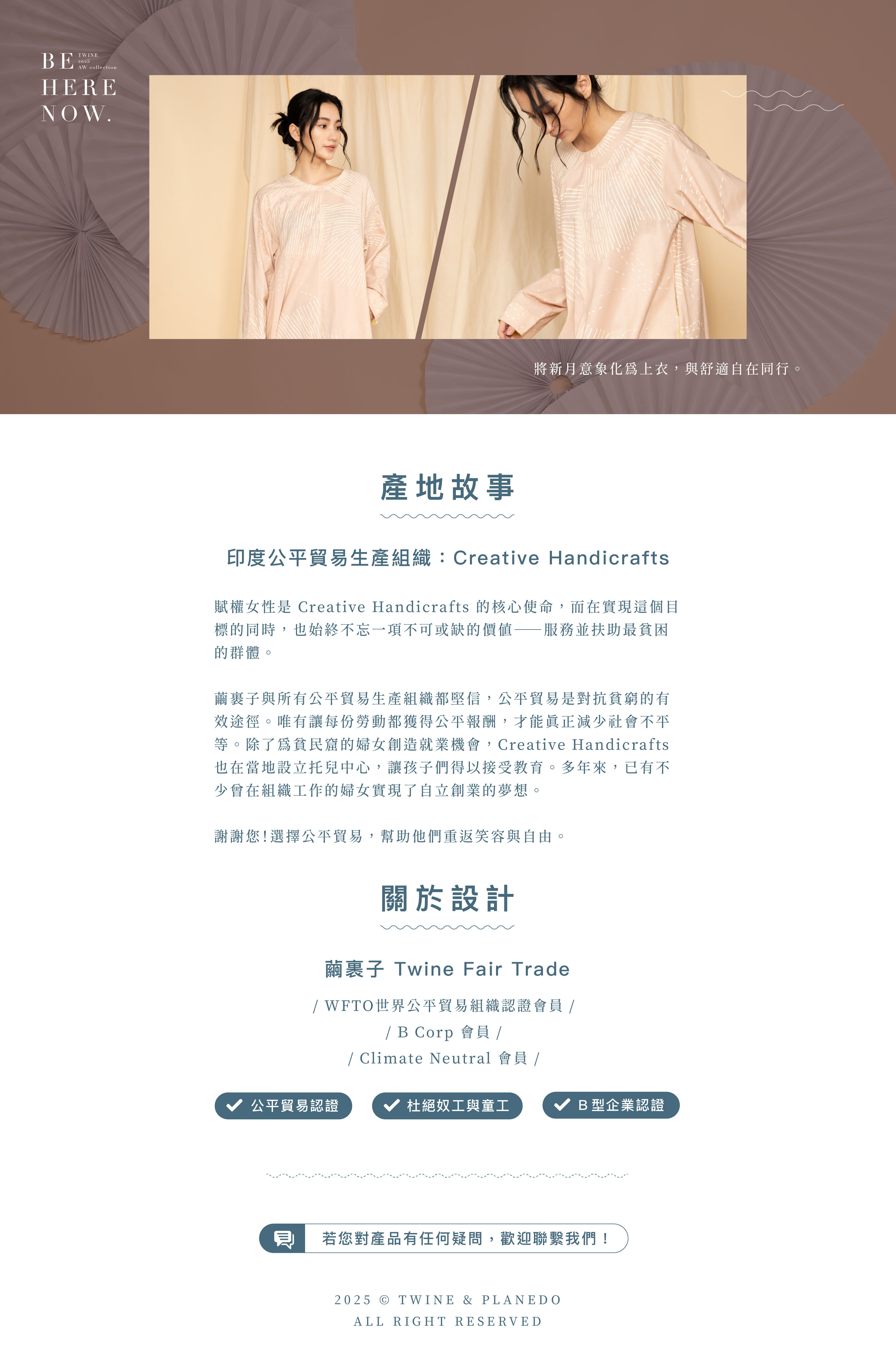 將新月曲線之美化為上衣,繭型設計隨時帶來寬鬆舒適。來自尼泊爾公平貿易組織,以手織布打造的溫暖之作。