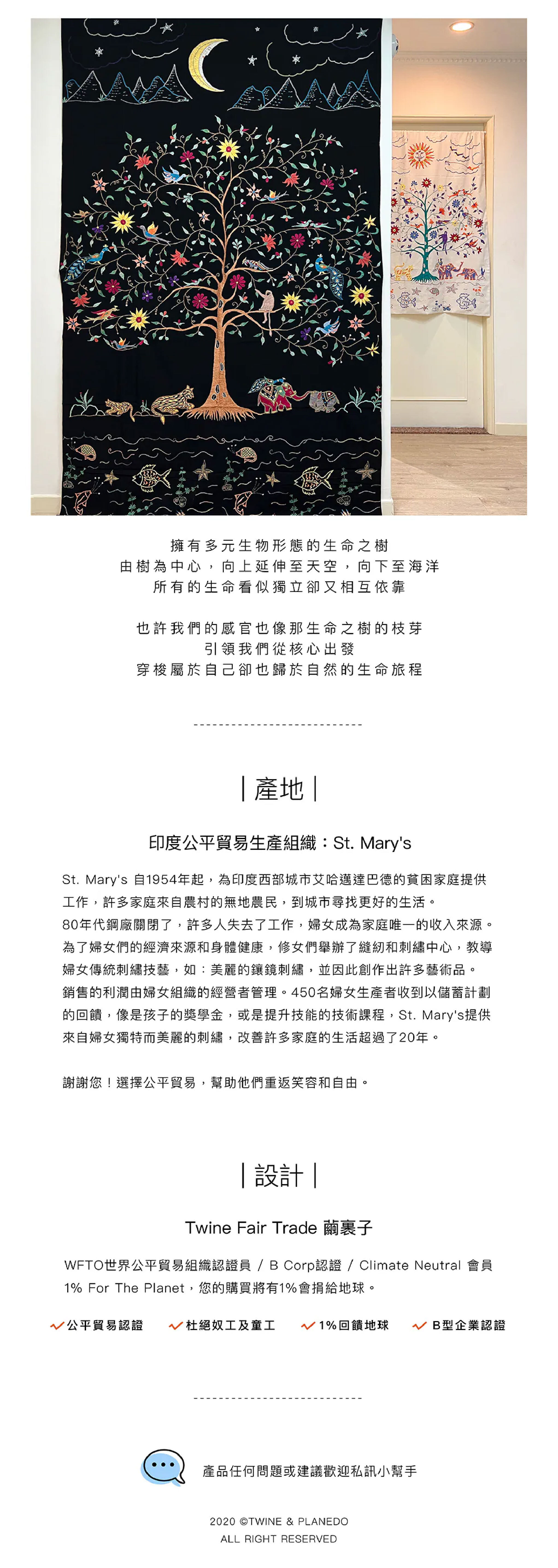 來自印度公平貿易組織婦女一針一線的手繡之作,時間是最美的禮物。