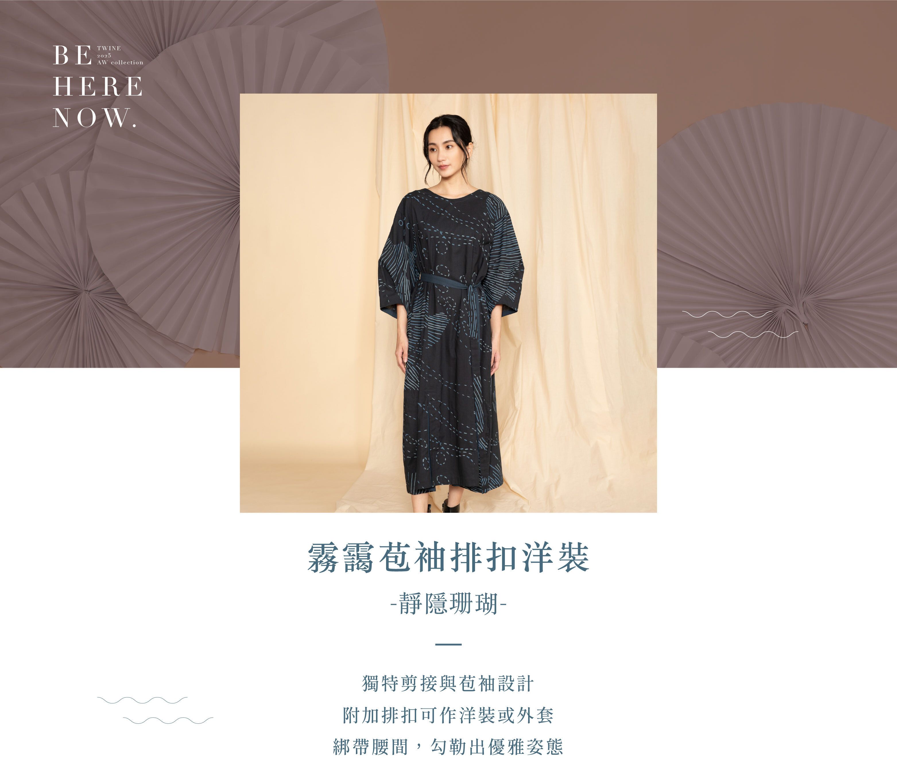 霧靄苞袖排扣洋裝_靜隱珊瑚