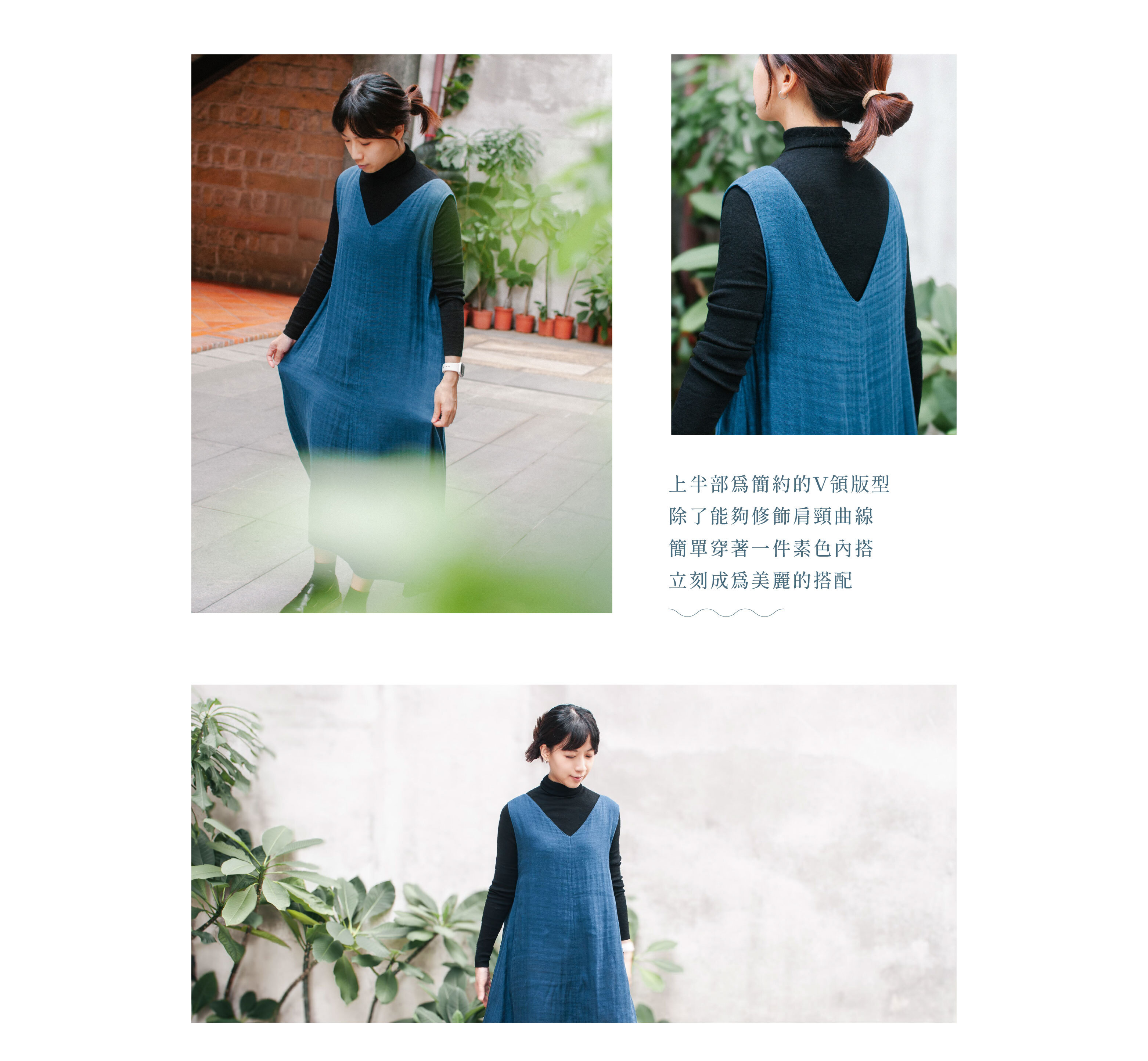 採用前後雙 V 領與細緻打褶設計,勾勒優雅肩頸並增添立體層次。
