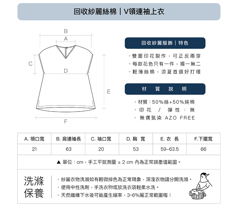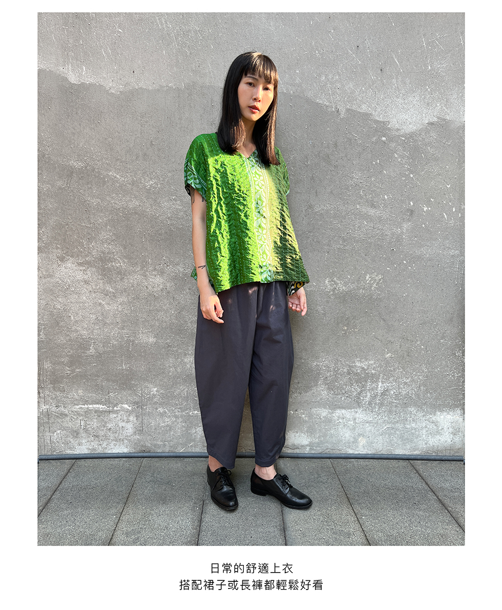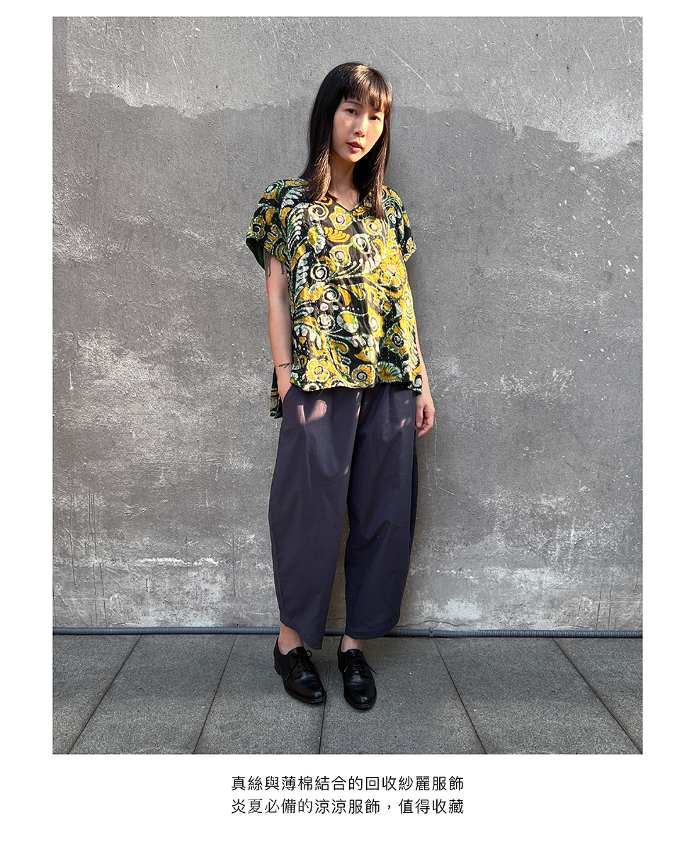 回收紗麗絲棉_V領連袖上衣 25RST06