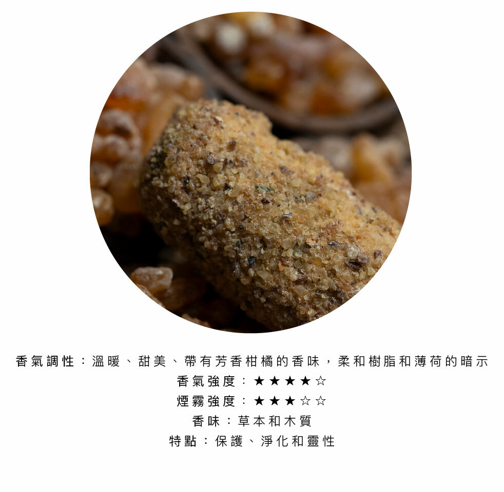 乳香的香氣增強內在力量,幫助克服挑戰並取得成功。乳香的香味能開啟微妙的漩渦,促進保護和繁榮能量的流動。