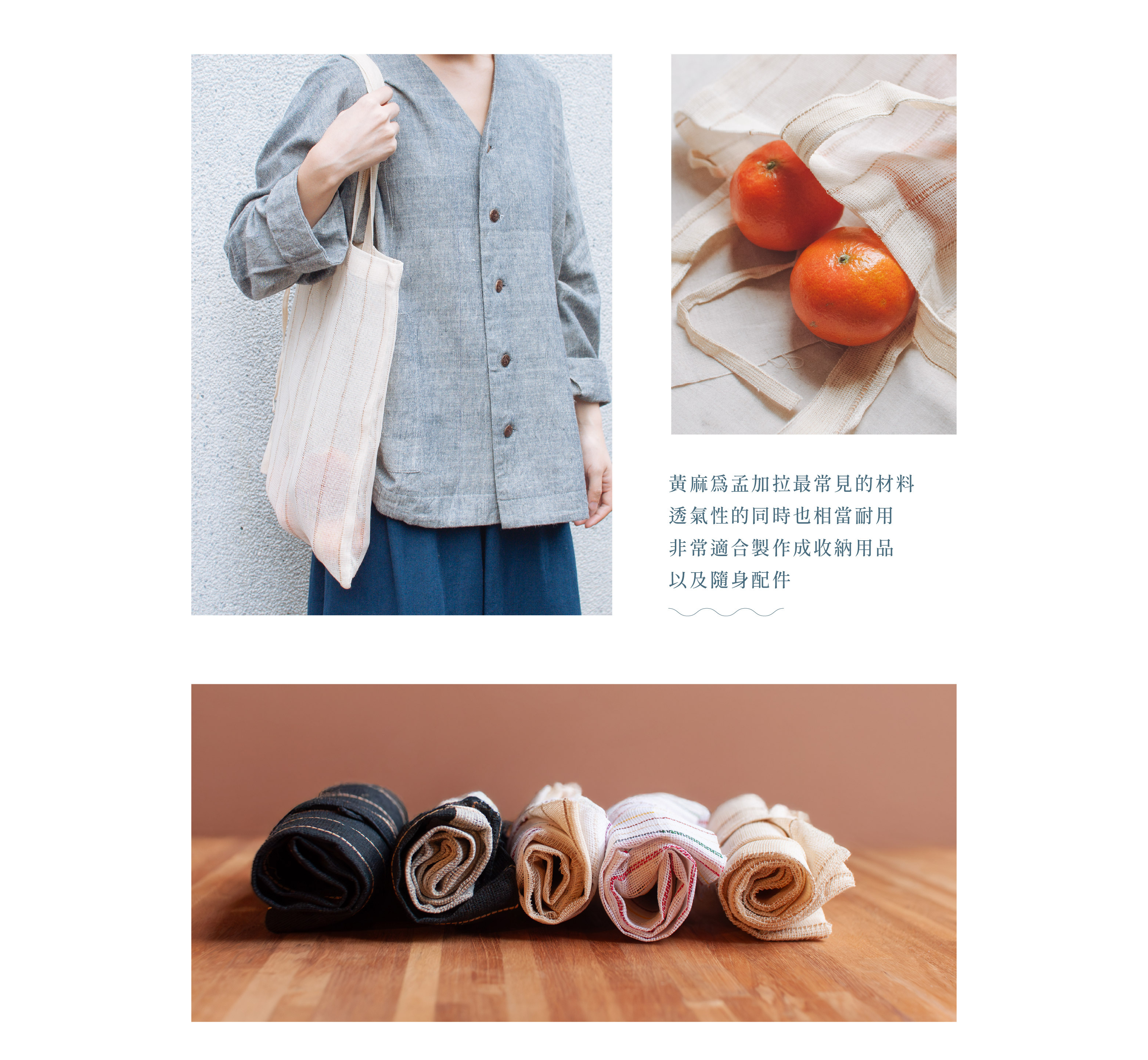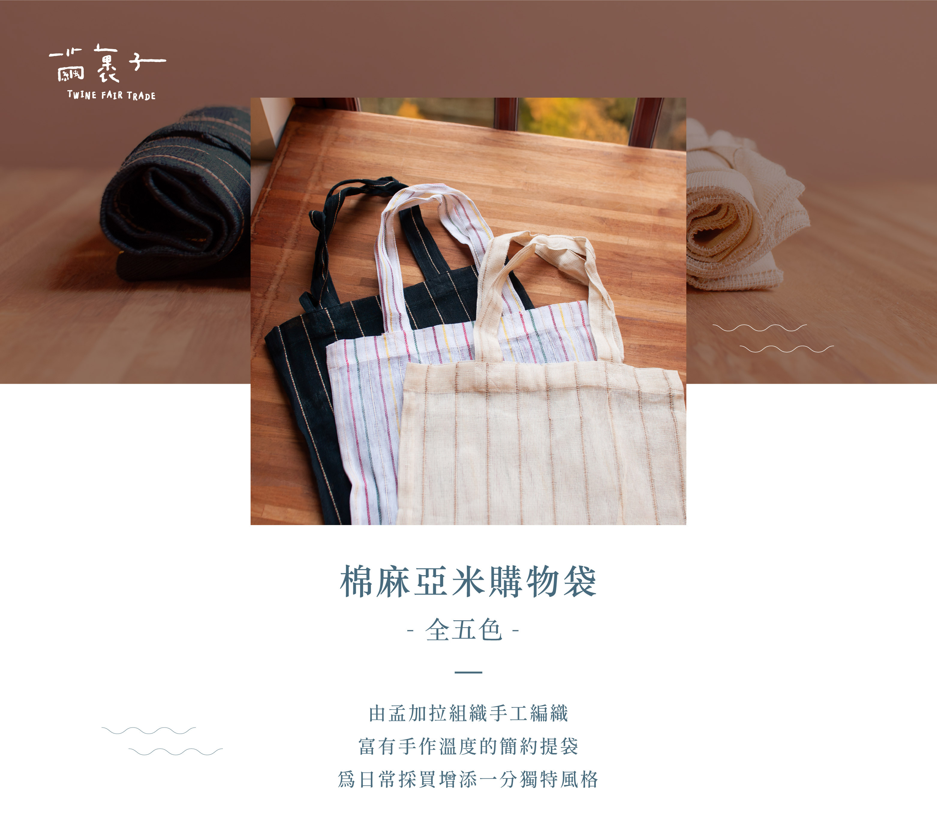 來自孟加拉公平貿易組織,將黃麻手工捻線編織而成的提袋。