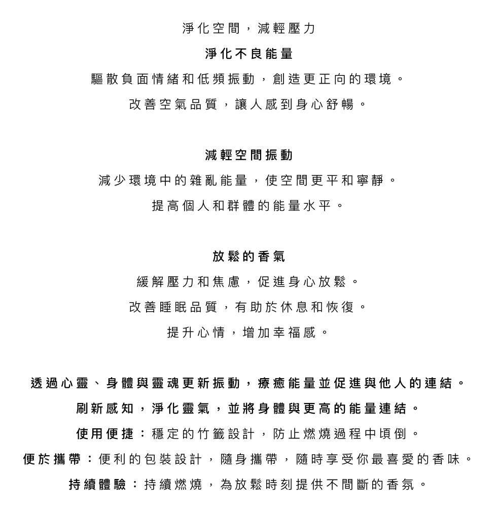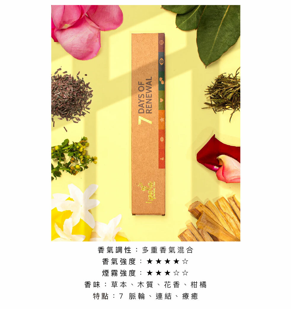 體驗我們獨家聖木與草本線香帶來的7天重生之旅。這些天然成分的融合,完美結合,為你的生活增添正能量。