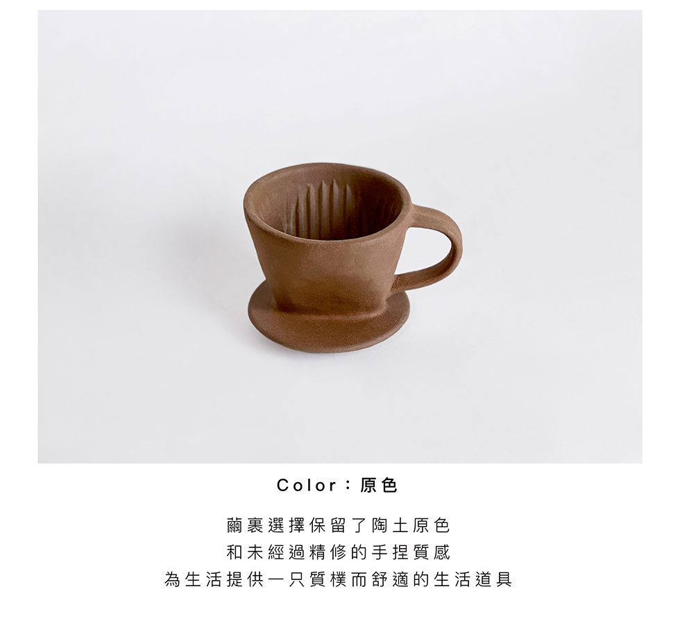 手工製作的扇形濾杯,保留陶土原色和未經過精修的手捏質感,由尼泊爾公平貿易組織製作,為生活提供一只質樸而舒適的生活道具。