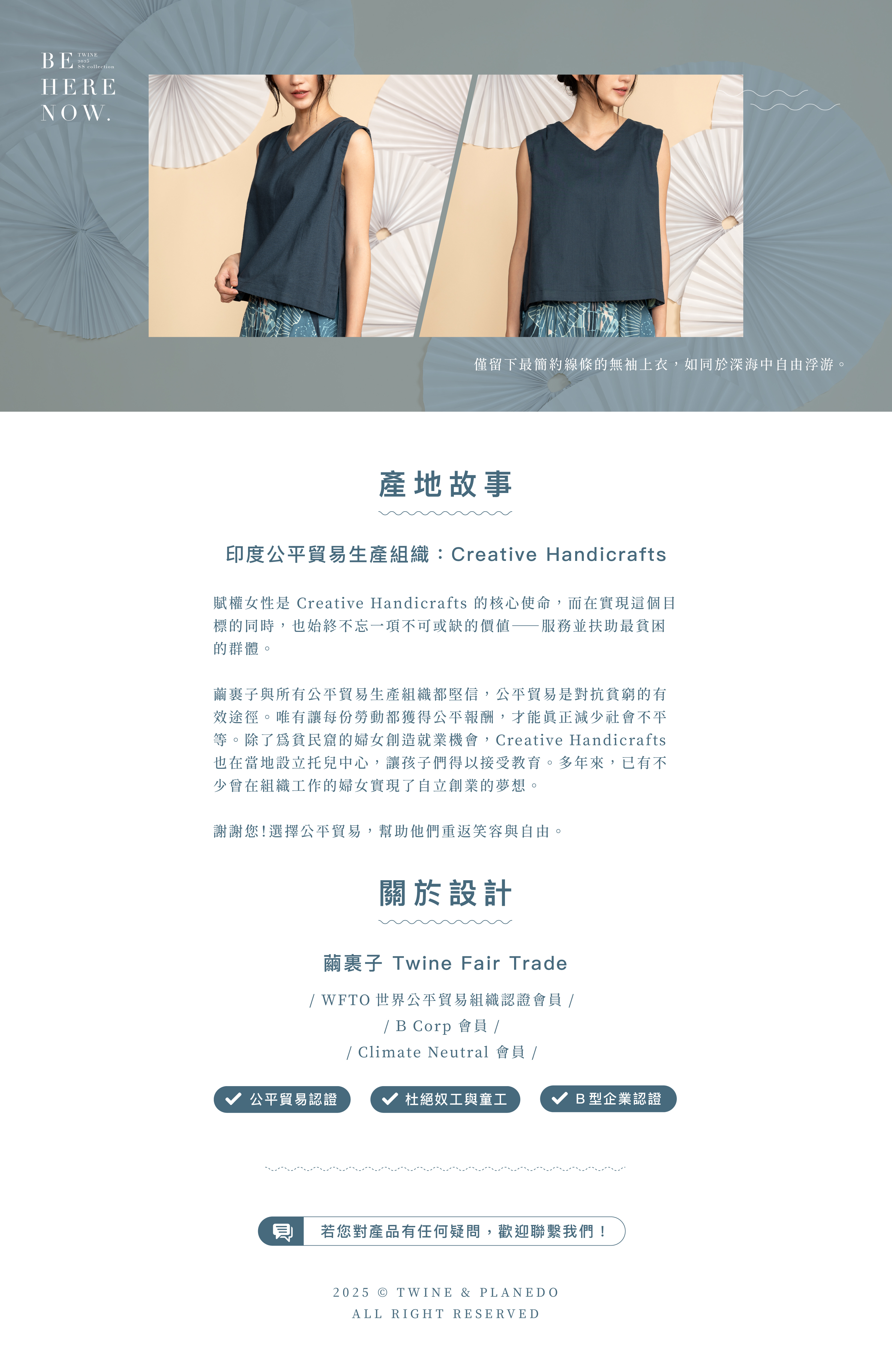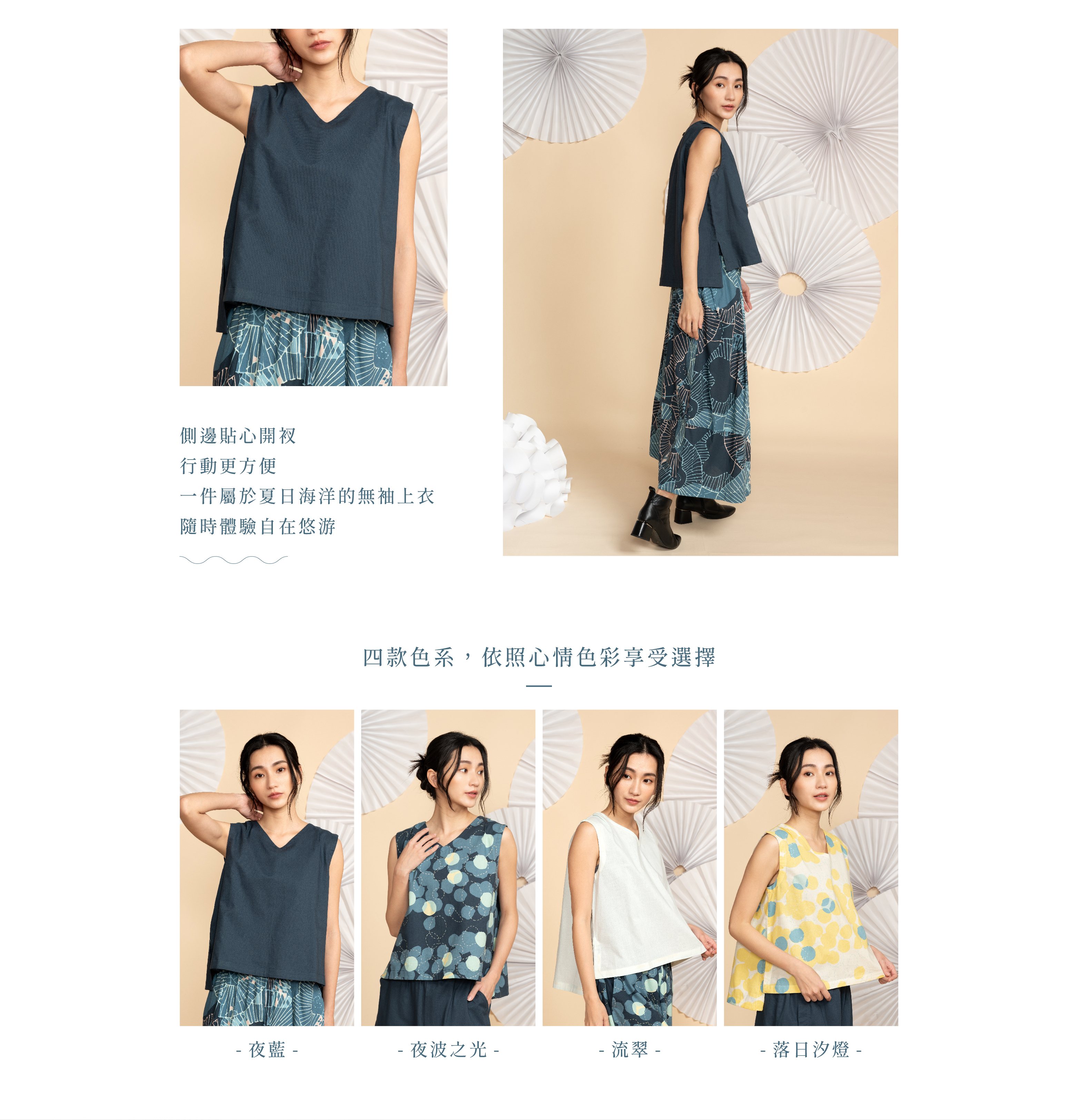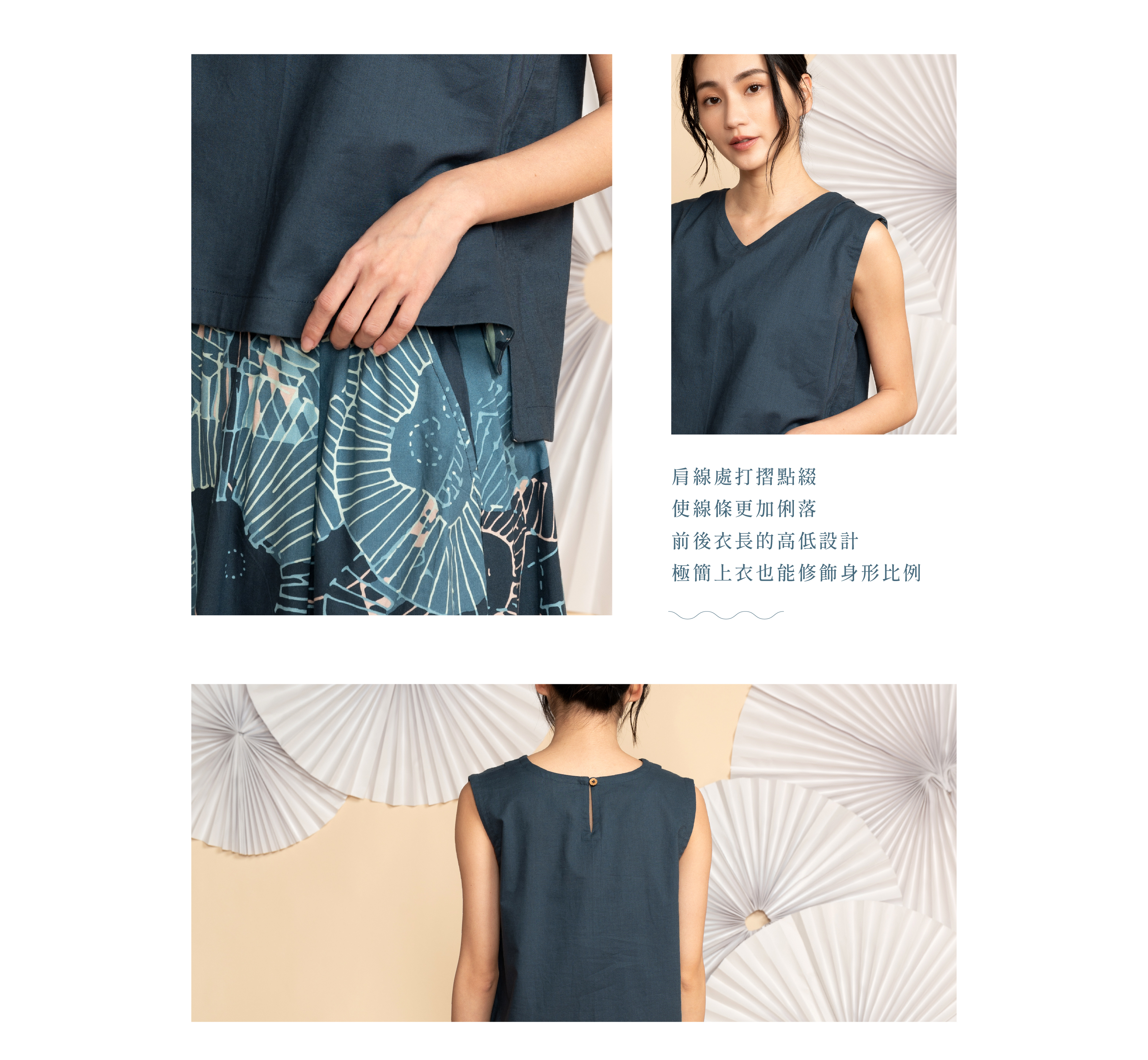 肩線打折設計勾勒簡約俐落輪廓,前短後長修飾身形線條。側邊開衩設計,提升活動自在感,讓穿著如同在海中漂游般,更輕盈靈活。