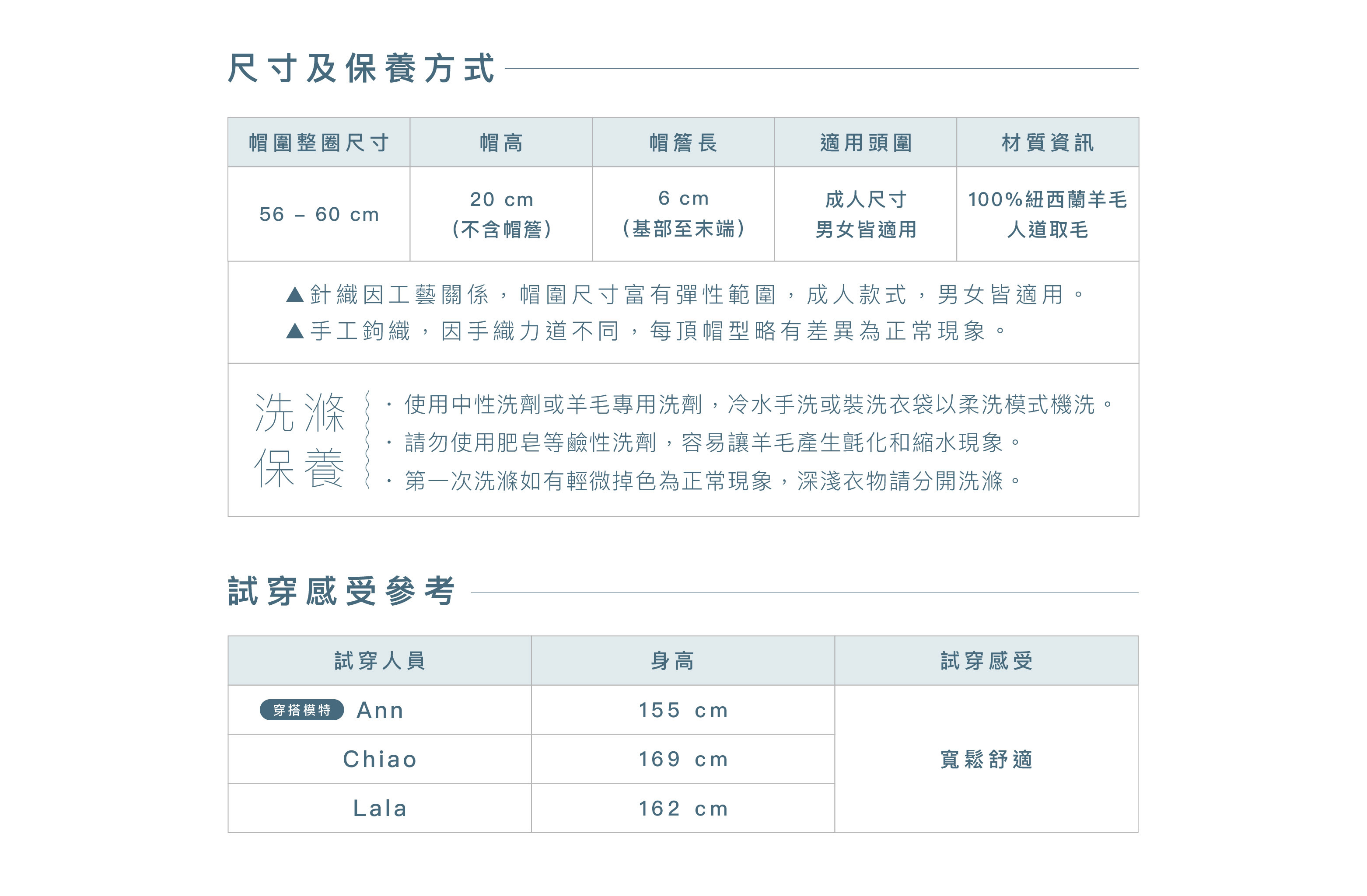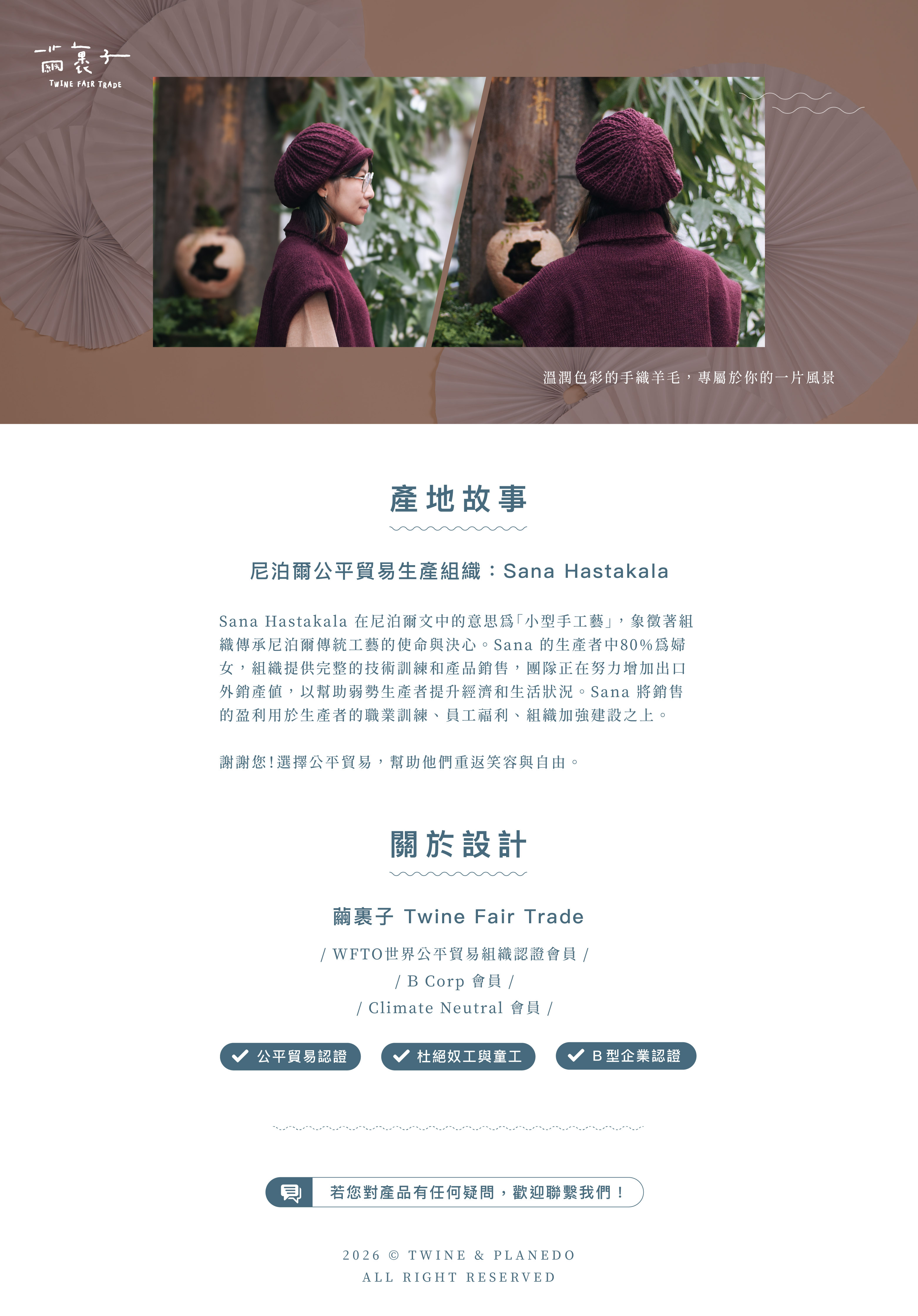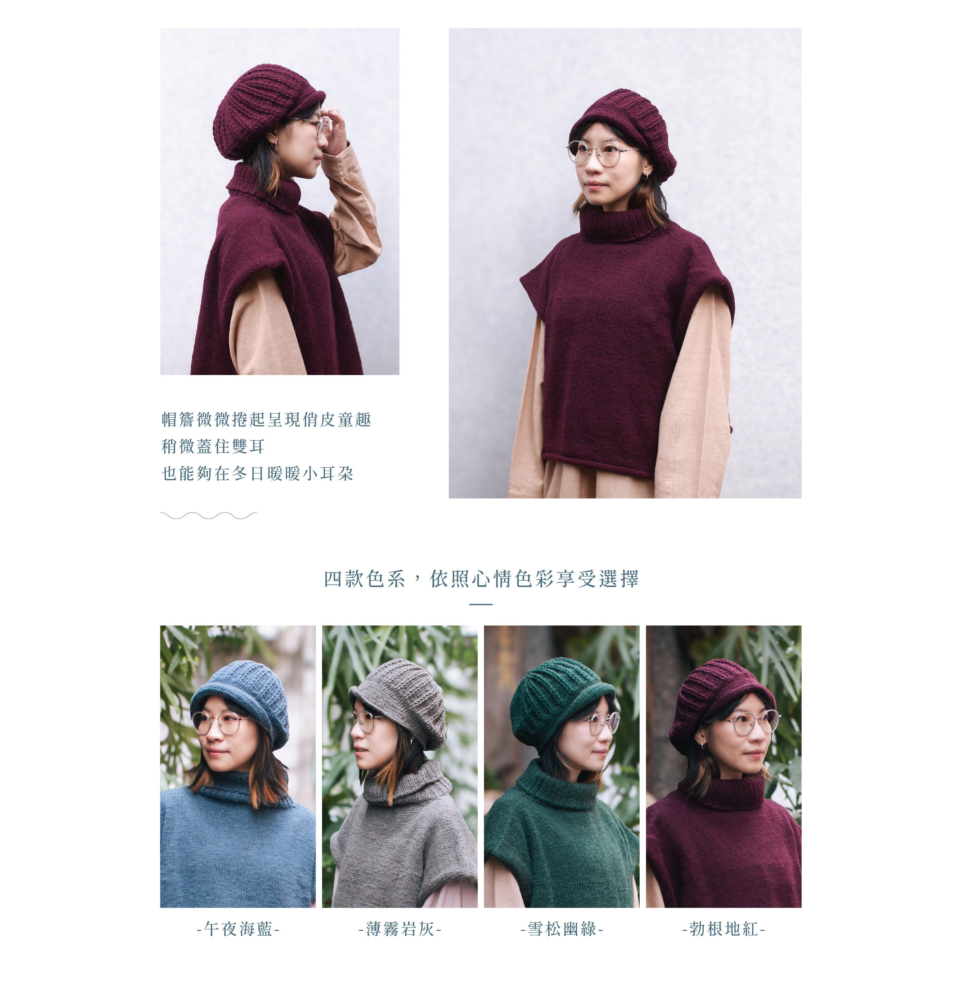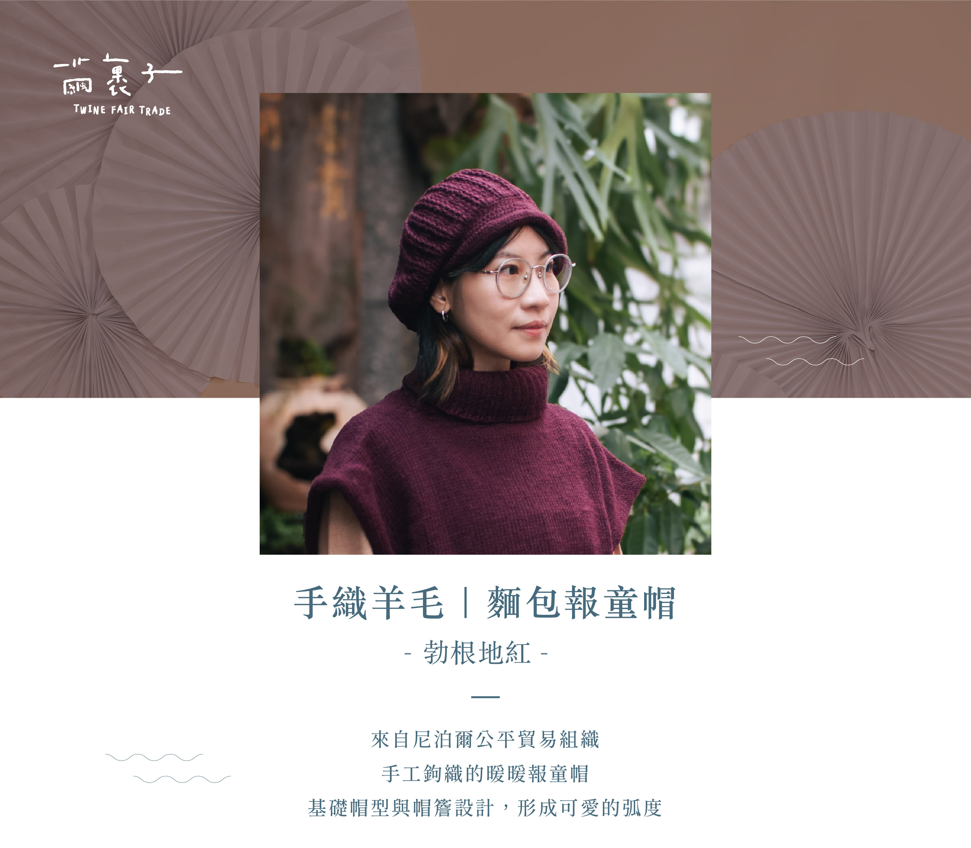100%紐西蘭羊毛針織帽,由公平貿易組織的婦女手工鉤織,簡約的基礎色調,可前後反戴,輕鬆搭配變換風格,獻給冬日冷冽的一抹溫暖。
