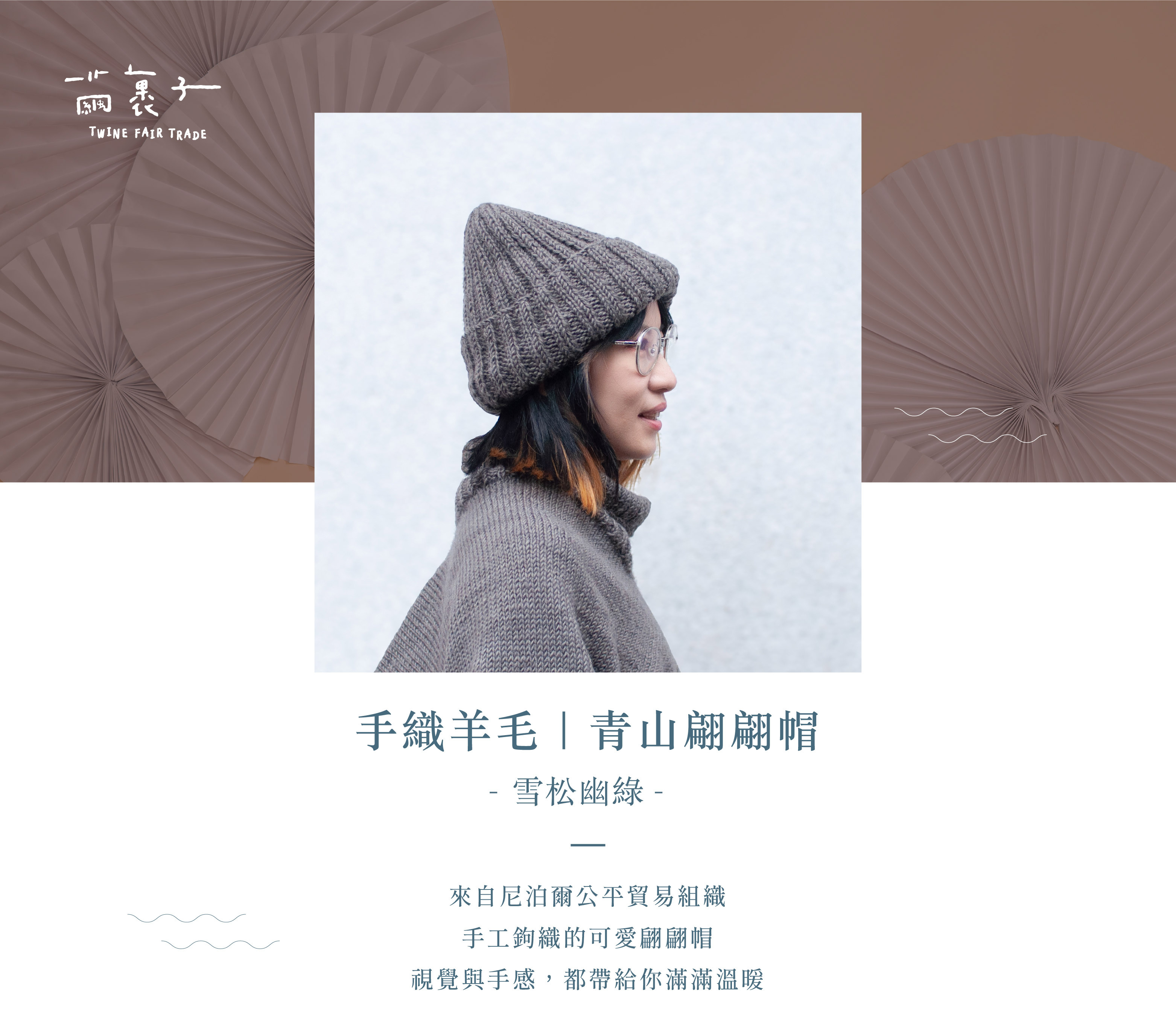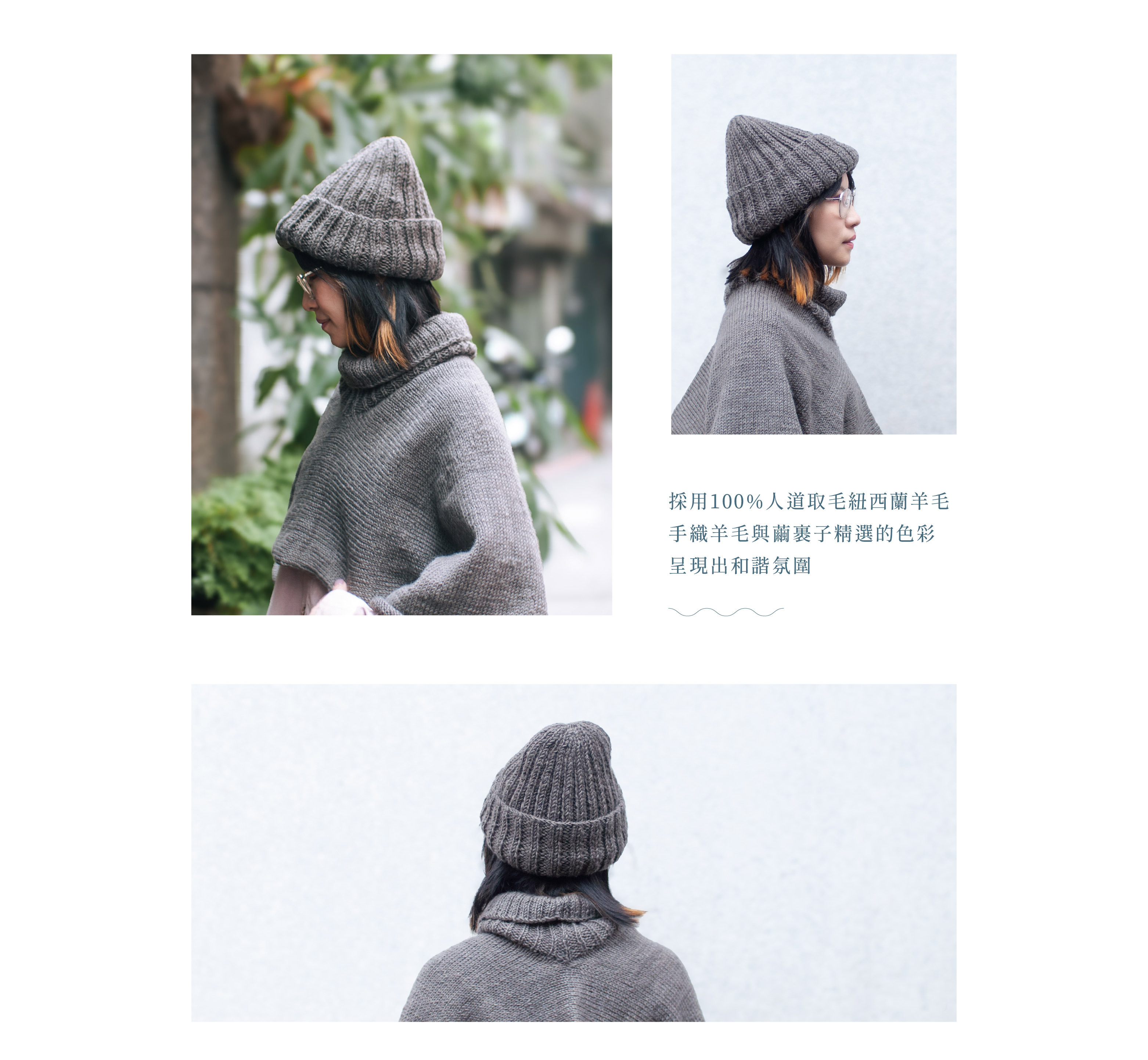 100%紐西蘭羊毛針織帽,由公平貿易組織的婦女手工鉤織,簡約的基礎色調,3種戴法,輕鬆搭配變換風格,獻給冬日冷冽的一抹溫暖。