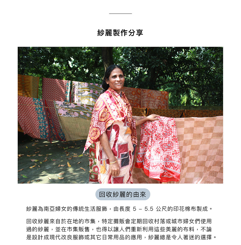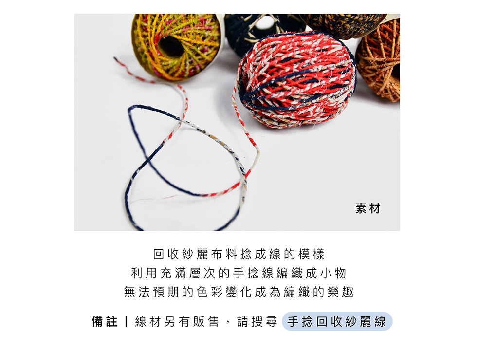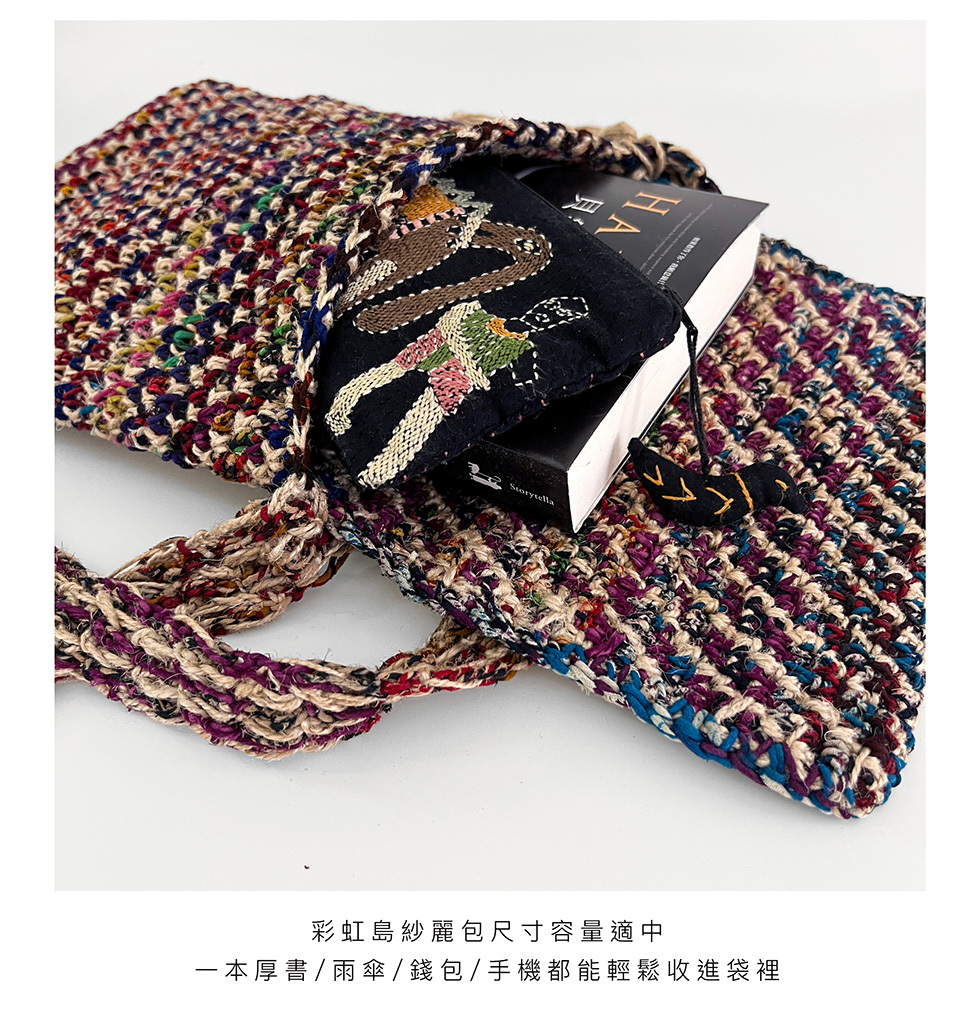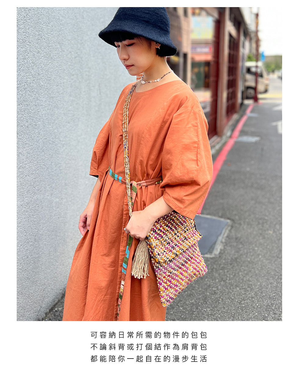 由孟加拉公平貿易組織手工編織,將回收的紗麗布料手捻成線材後,再將線材編織成繽紛多彩的隨身包,每一只包的顏色獨一無二,專屬於你的島嶼色彩。