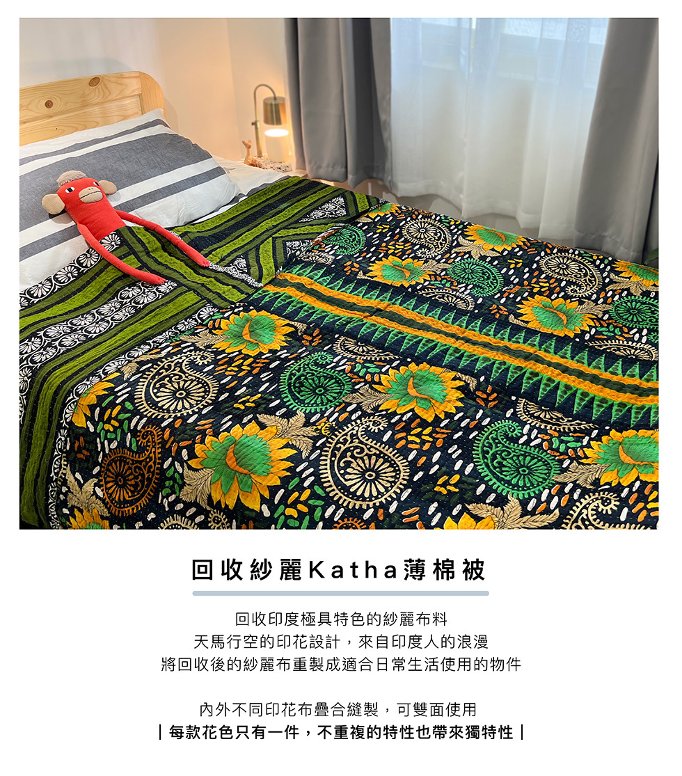 ◎因使用回收紗麗布料製作,每一條紗麗薄被的花色皆不相同,故此商品採隨機發貨,謝謝。