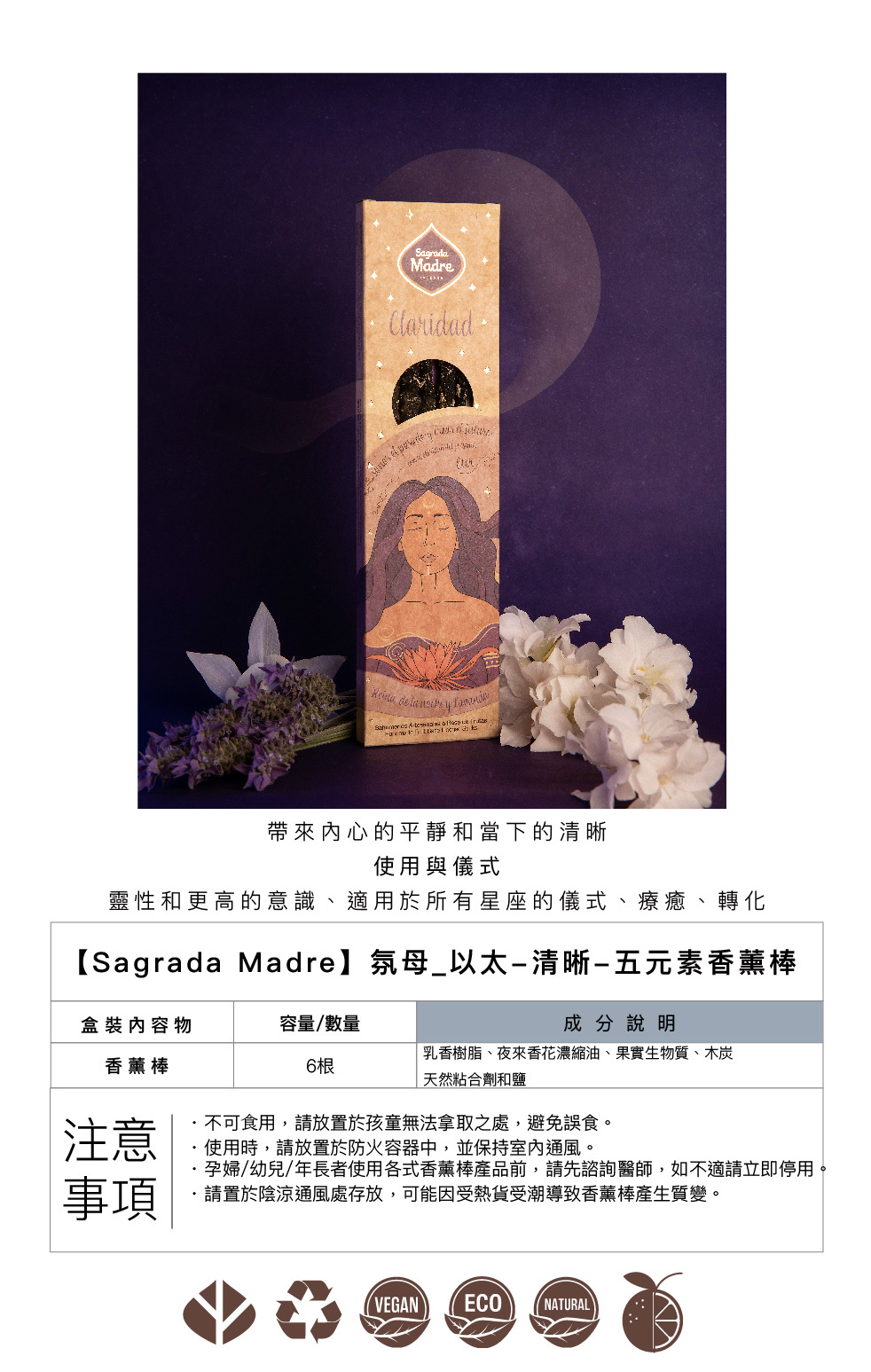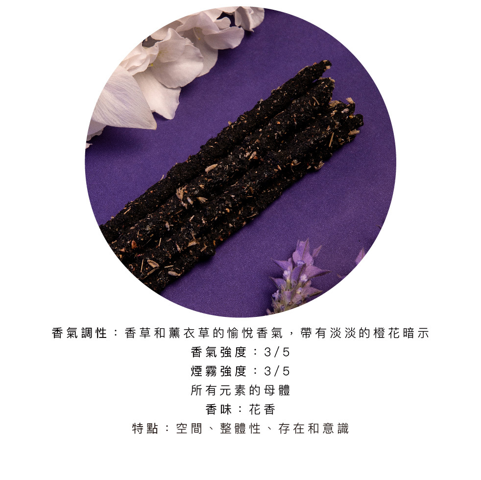 香薰以乳香樹脂為基底,並添加了薰衣草花、乳香樹脂、濃縮夜香花油、水果生物質、木炭、天然粘結劑和鹽。香薰的轉化香氣搭配夜香花的引人入勝的芬芳,能夠提供清晰的心靈,讓您擁抱當下的美好。