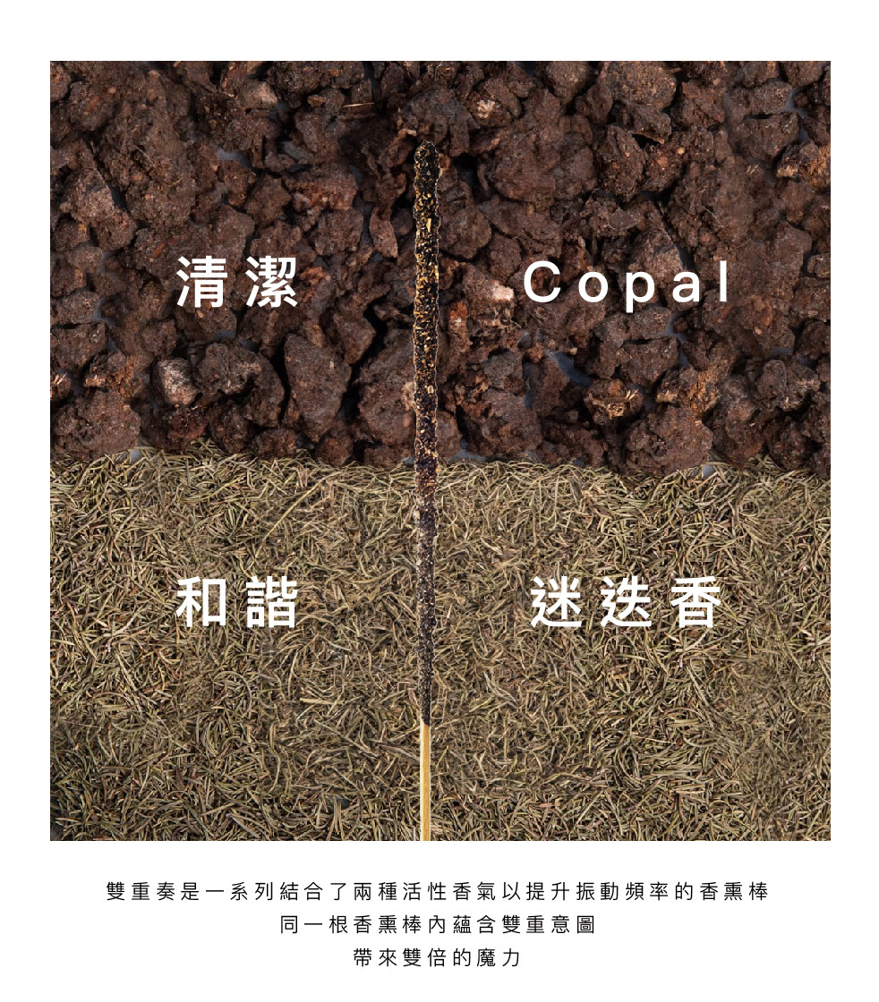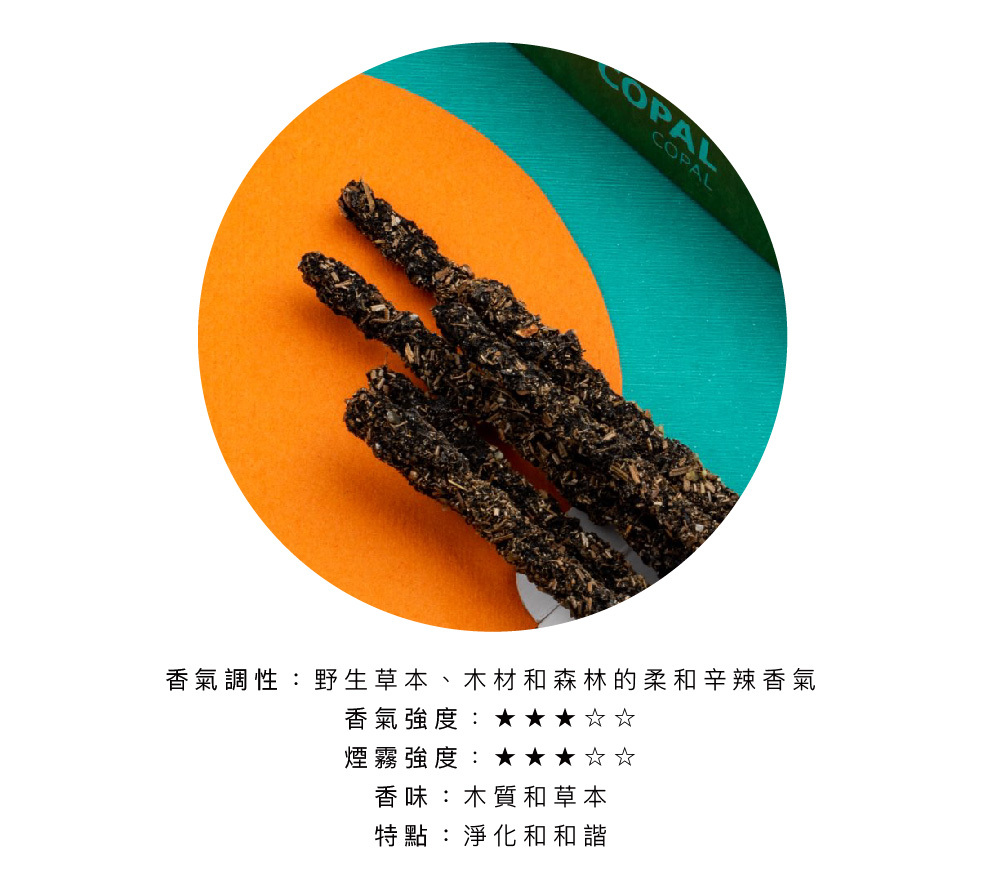 Copal與迷迭香的香氣互相作用,創造出和諧的協同效應。