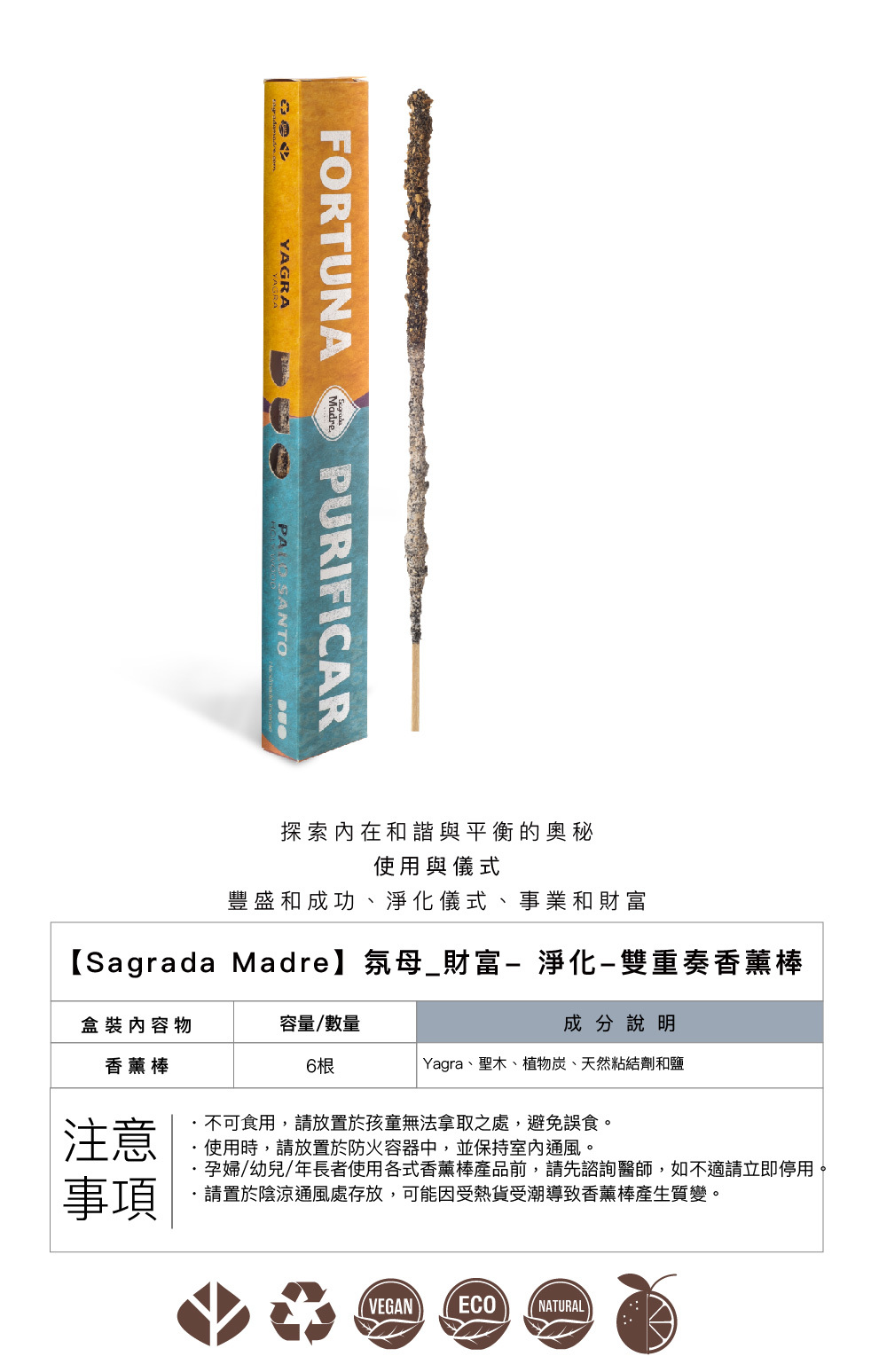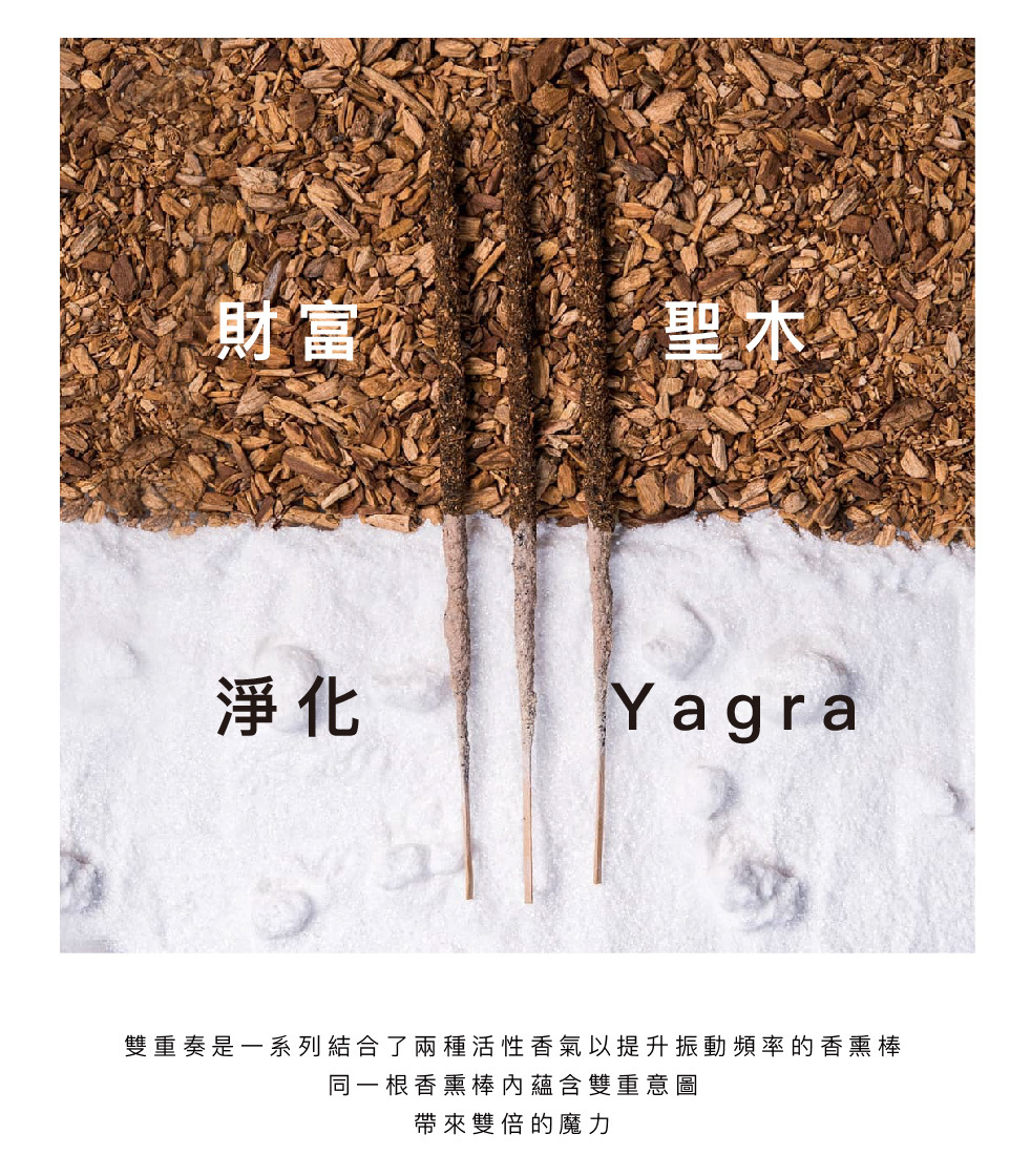 Yagra的純淨與聖木的精神力量結合在一起,兩者共同淨化空間,吸引好運。
