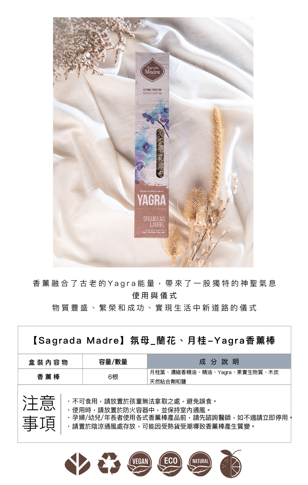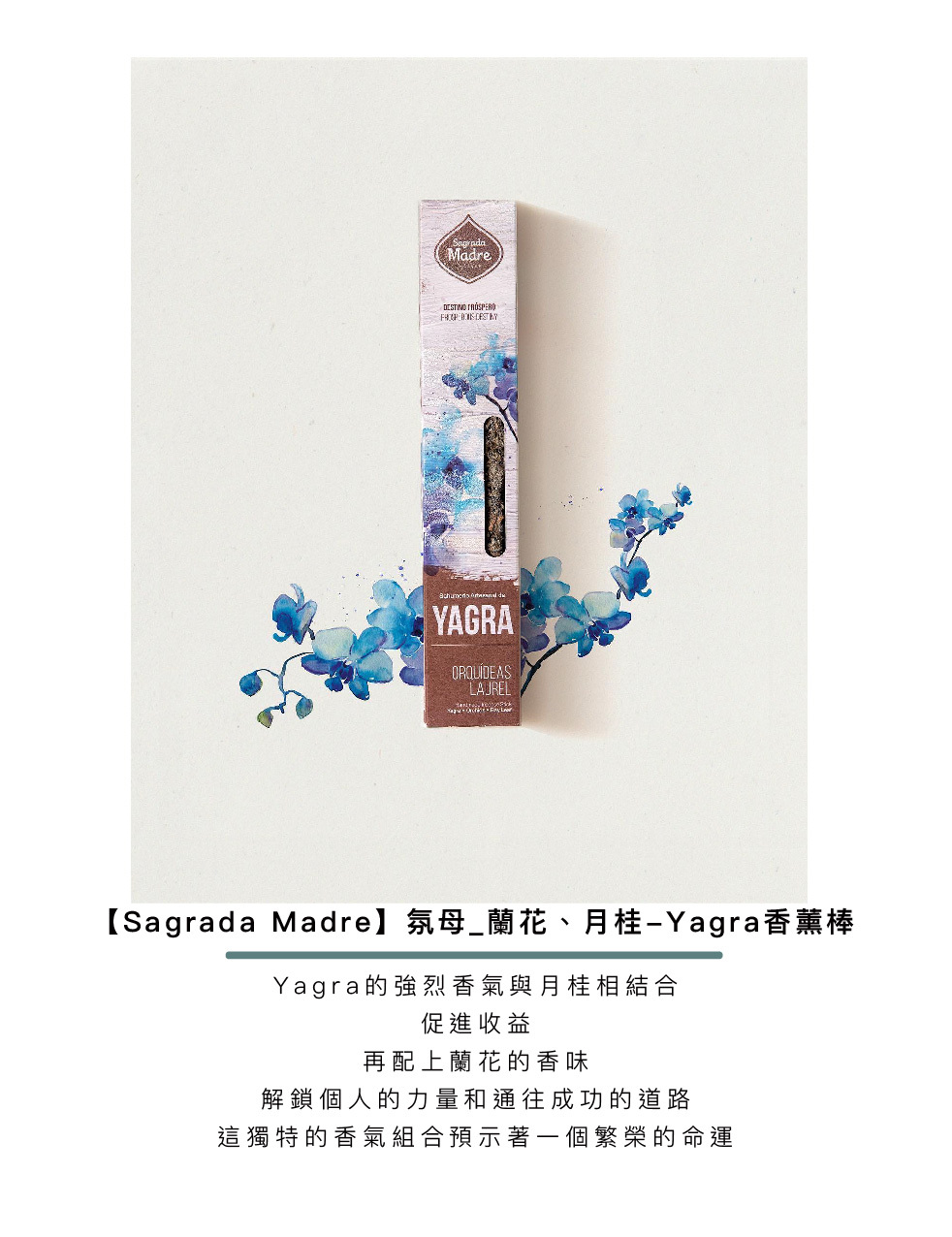 Yagra的強大香氣與月桂葉結合,促進收穫,當與蘭花的芬芳混合時,開啟個人力量之門,為成功鋪平道路。這種獨特的香氣混合承諾一個繁榮的命運。