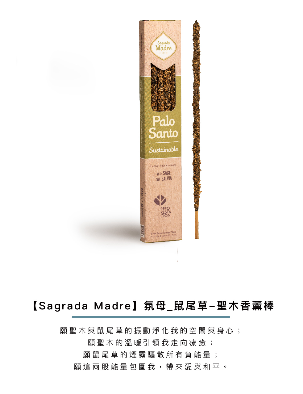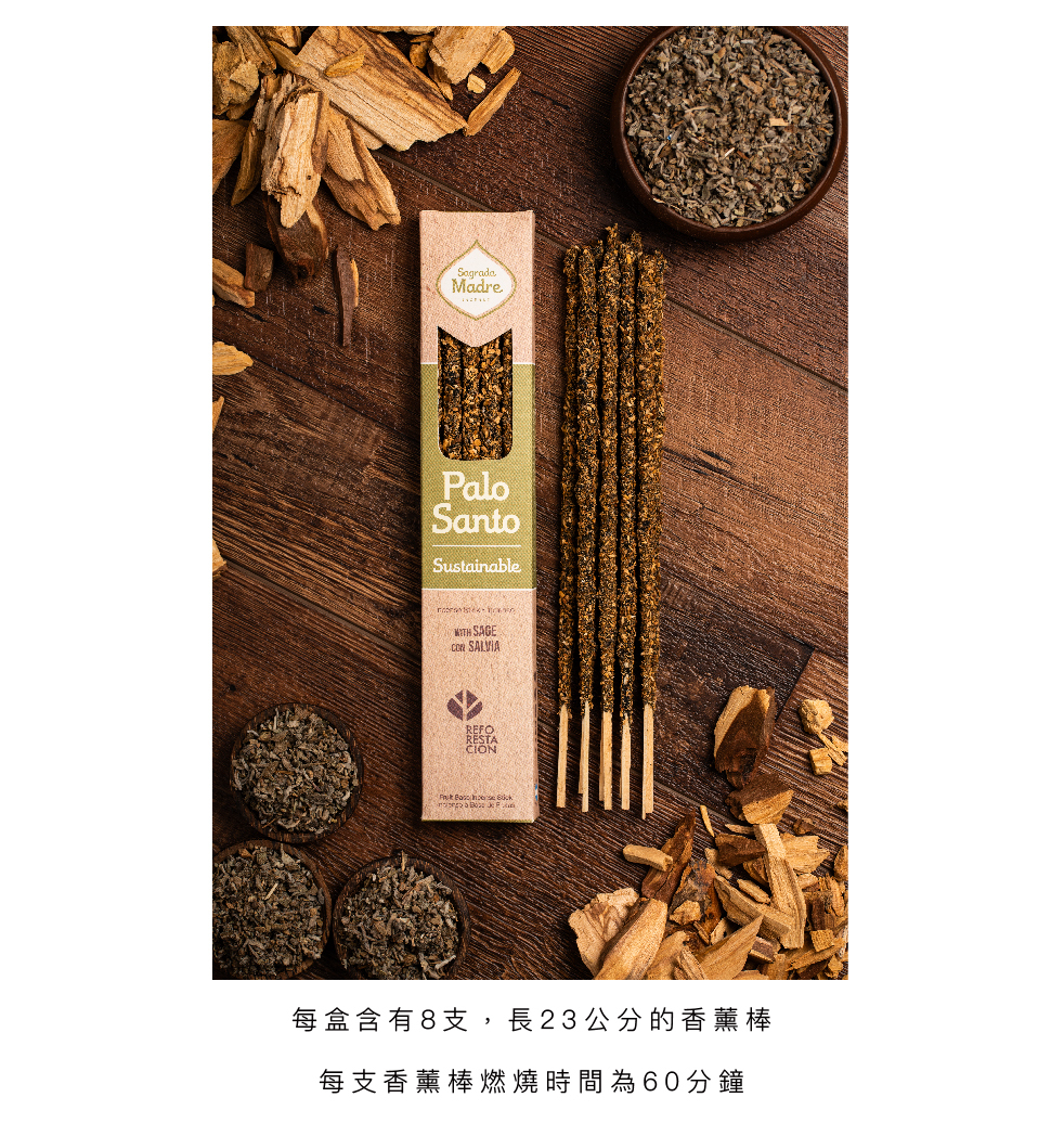 Palo Santo & Sage 香薰棒結合了聖木與鼠尾草的神聖能量,專為淨化、療癒與靈性提升而設計。聖木帶來溫暖的療癒力量,而鼠尾草則驅散負能量,為您創造一個充滿愛與平靜的空間。