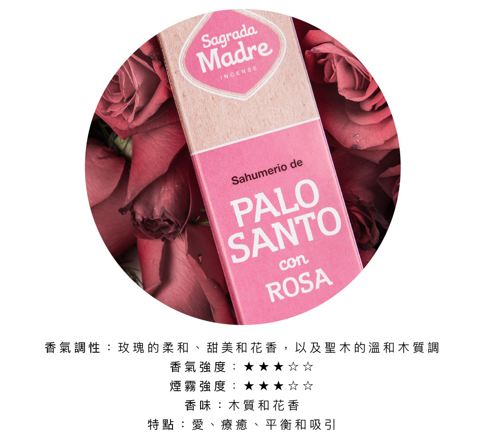 Palo Santo與愛之花玫瑰相結合,點燃了一種神聖的浪漫與詩意的精華,