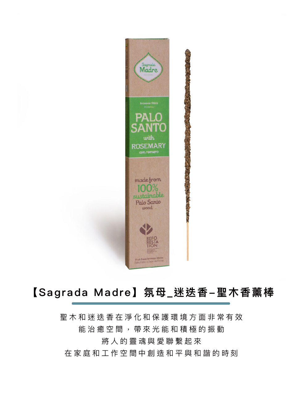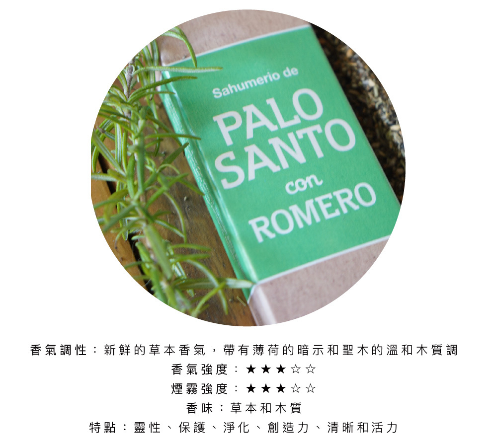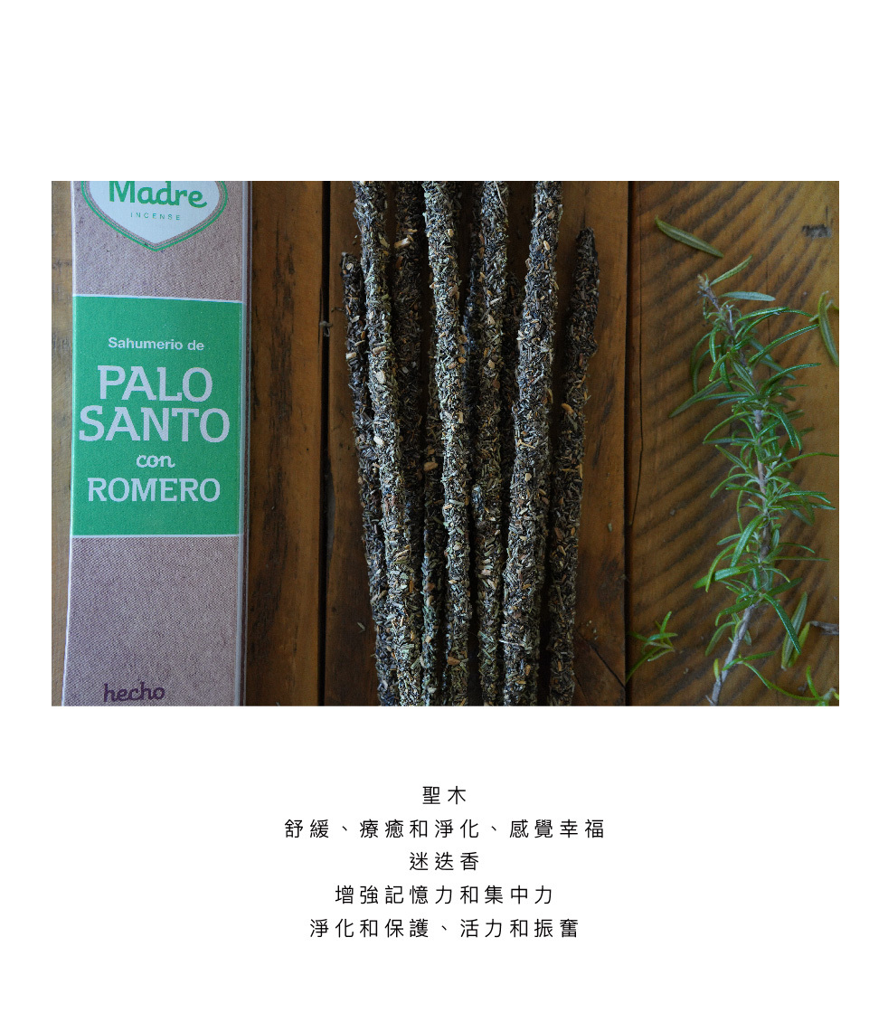 迷迭香是一種與記憶相關的草本植物,因此它與我們想要保存在心中的所有事物和人們有所聯繫。同時也象徵愛的草本植物,它提醒著兩個靈魂之間的聯繫。聖木通過和諧地觸碰一切,使迷迭香的能量更加豐富。