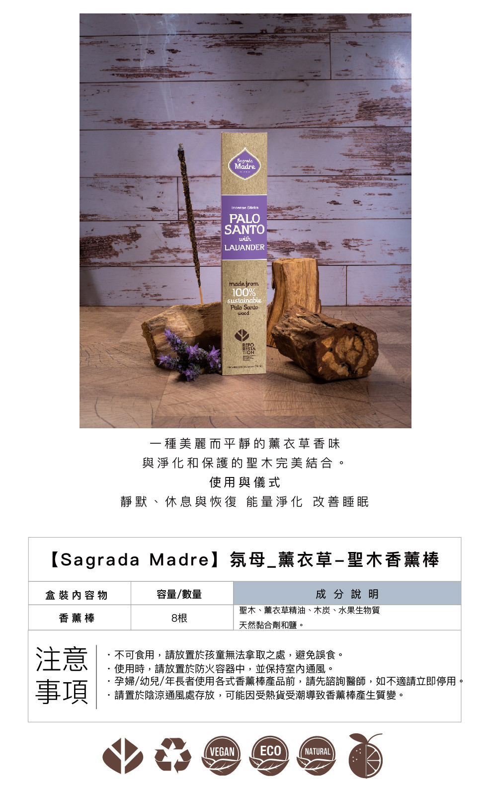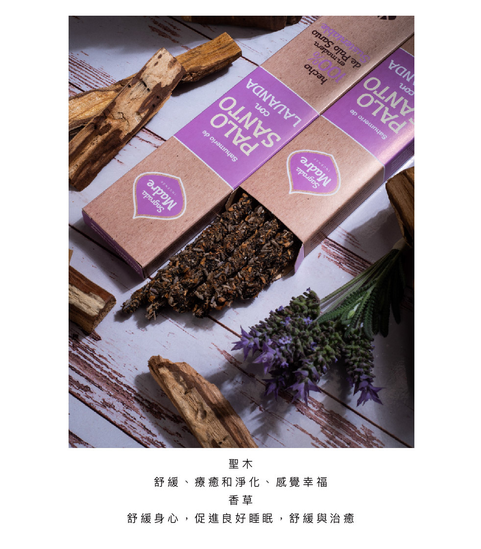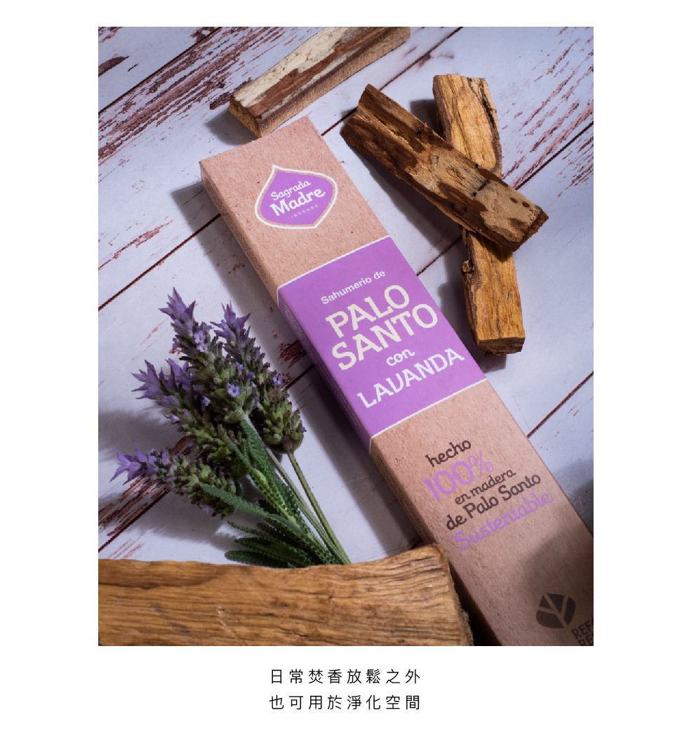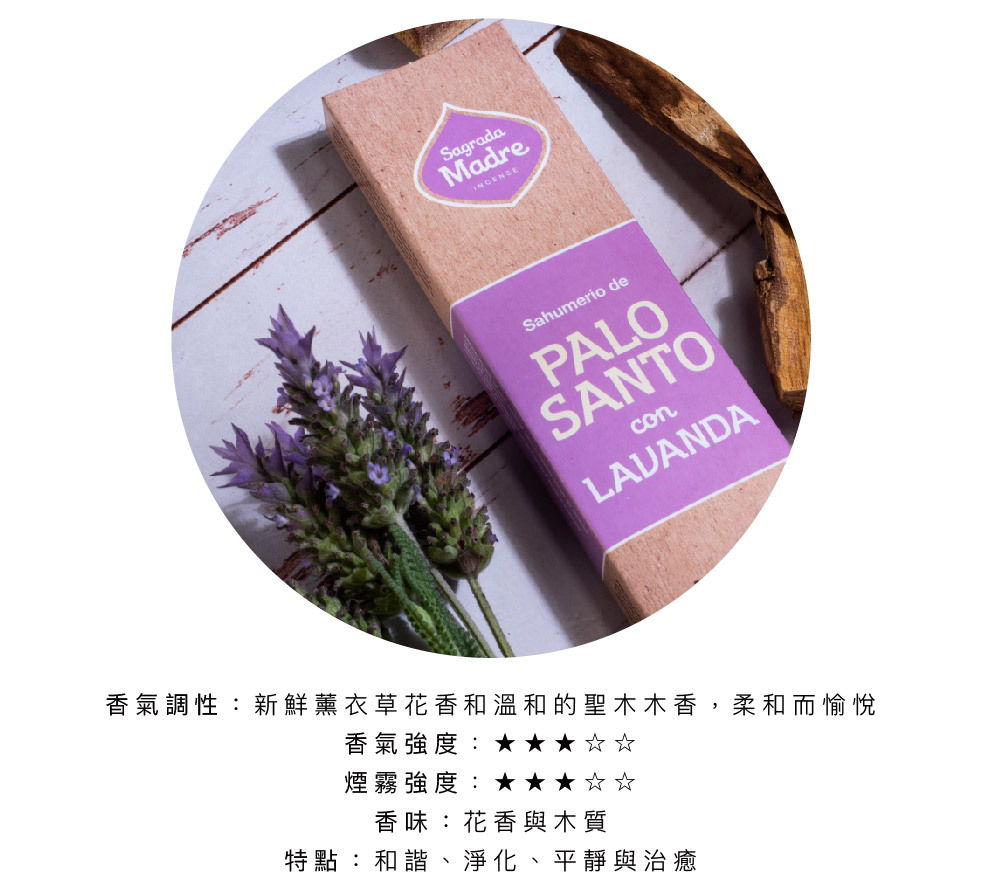一種美麗而平靜的薰衣草香味,與淨化和保護的聖木(Palo Santo)完美結合。