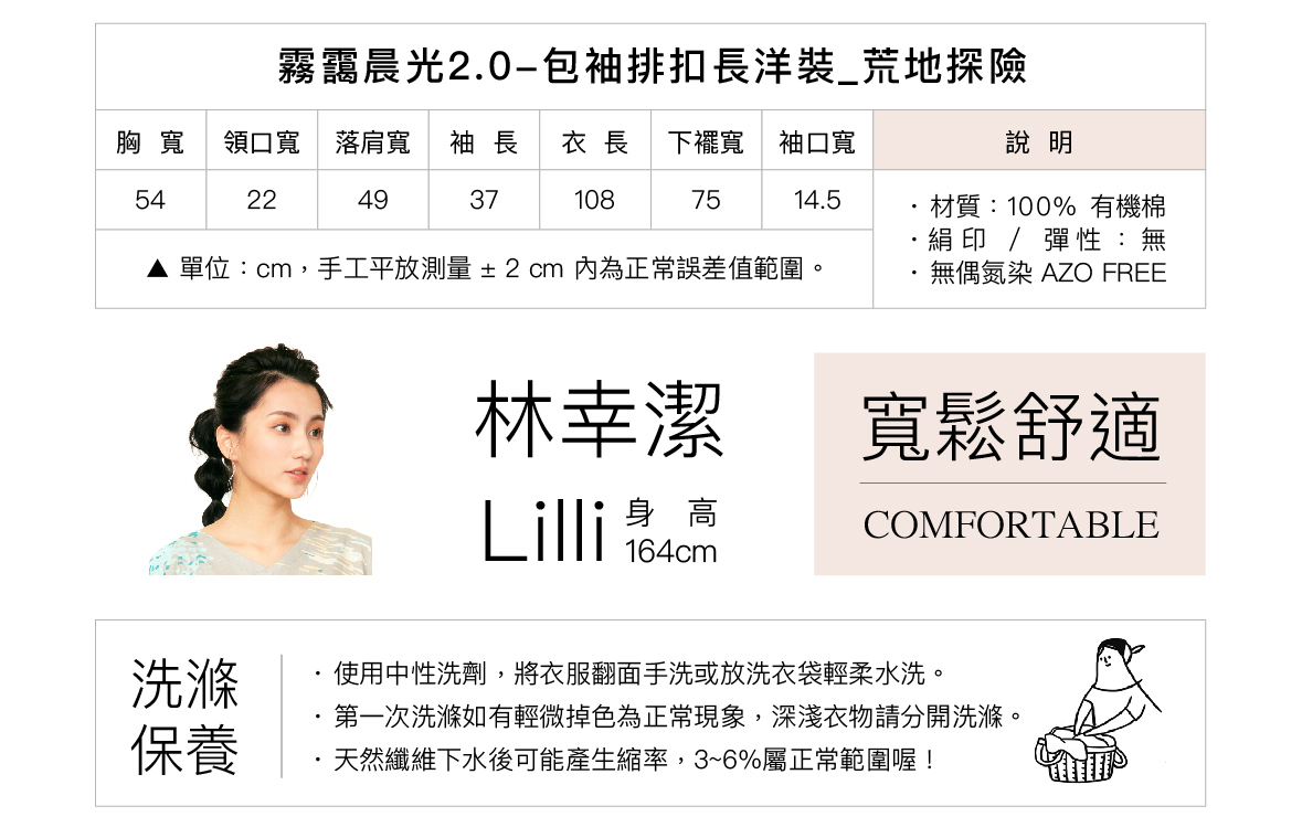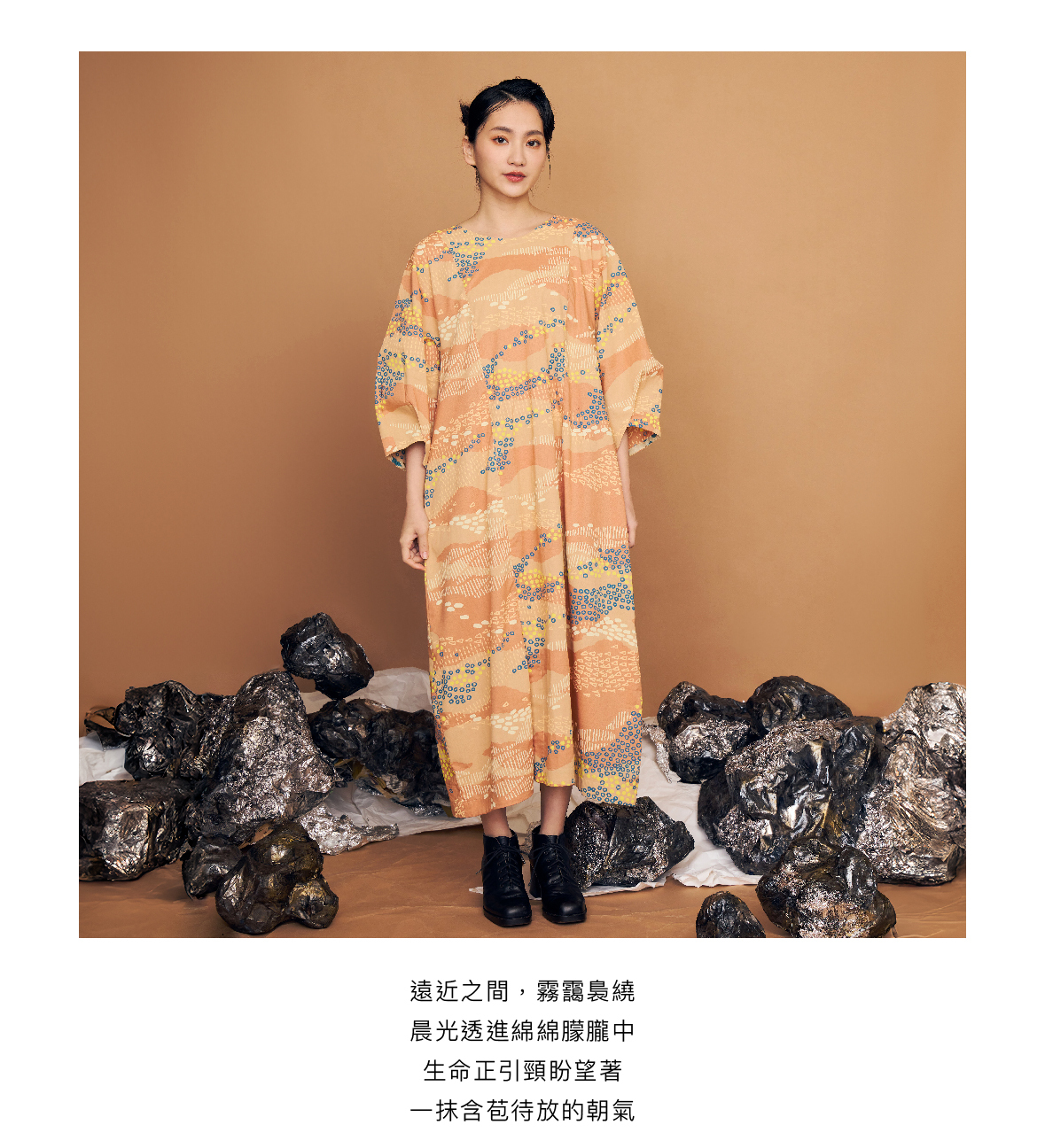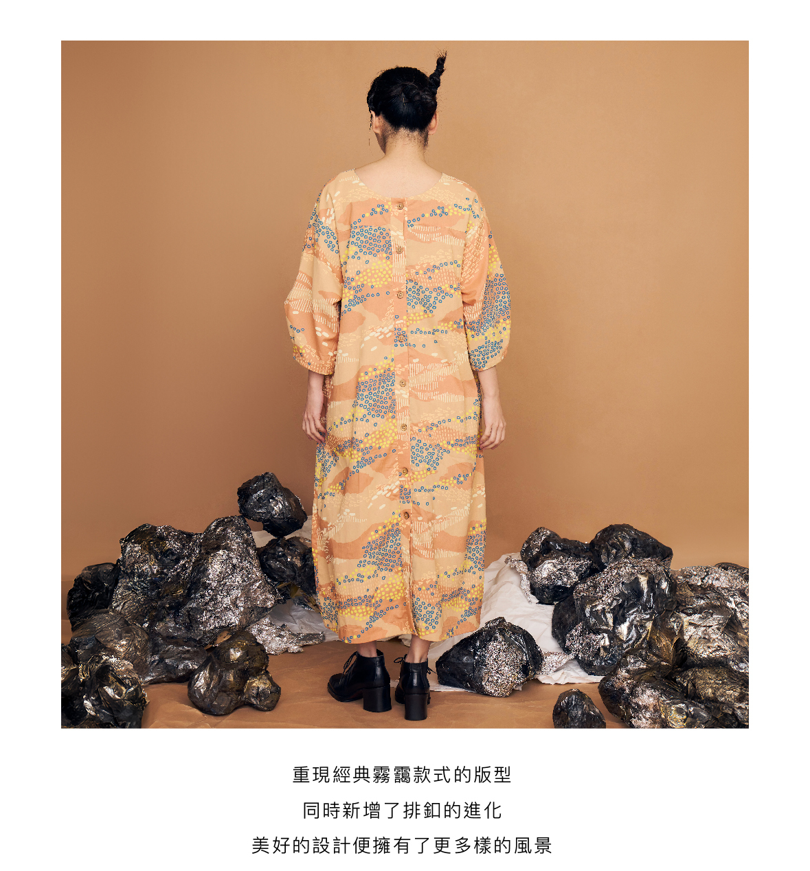 霧靄晨光2.0-苞袖排扣長洋裝_荒地探險
