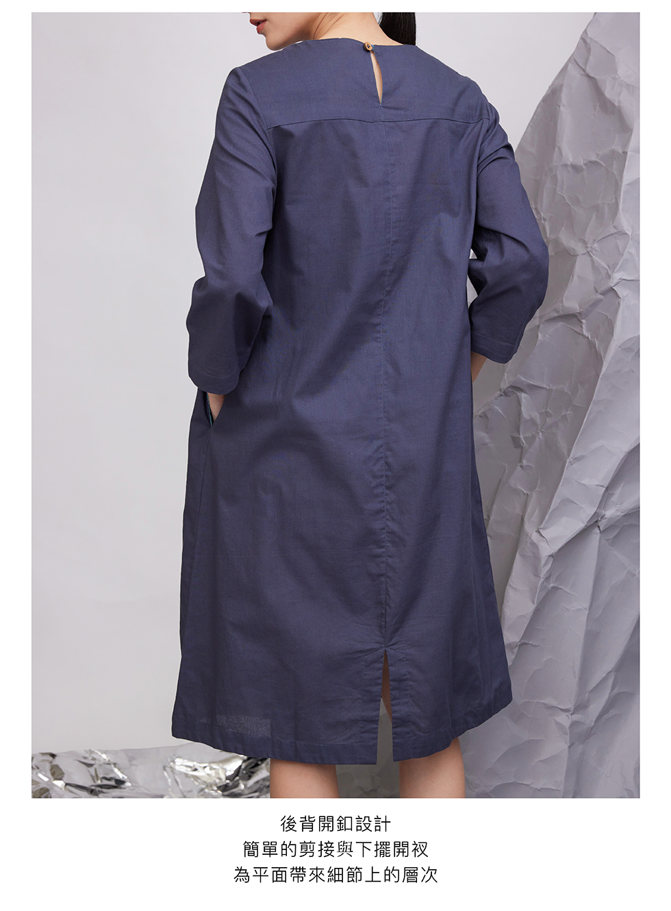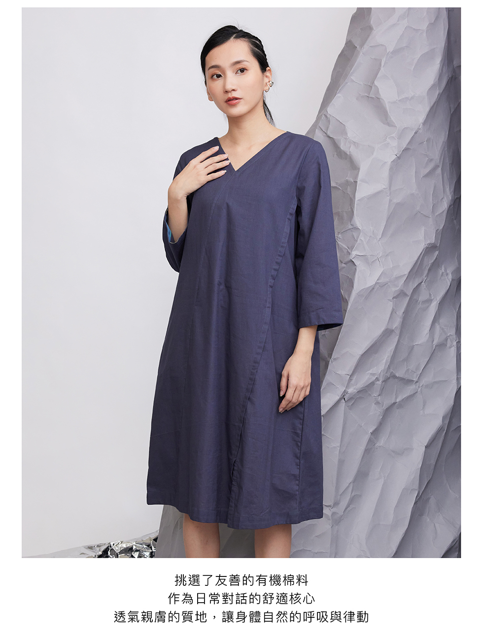 100%有機棉,經過繁複和去蕪,生活的練習回歸純粹,日常對話斜褶片洋裝,一份剛剛好的自在和愜意。