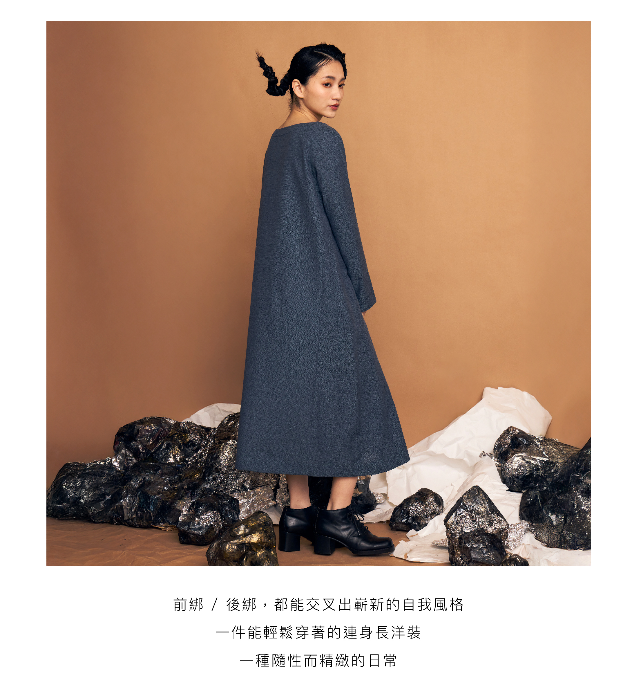・腰間雙側伸展而出的裙片,透過綁帶輕綁於腰間