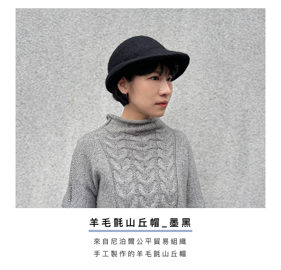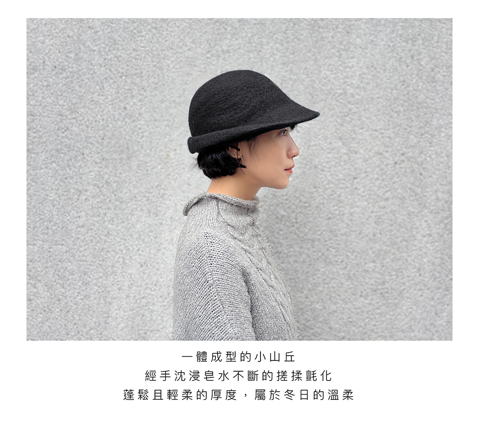 由公平貿易組織的婦女手工製作的羊毛氈帽,一體成型的簡約帽型,蓬鬆而輕柔的厚度,屬於冬日的溫柔。