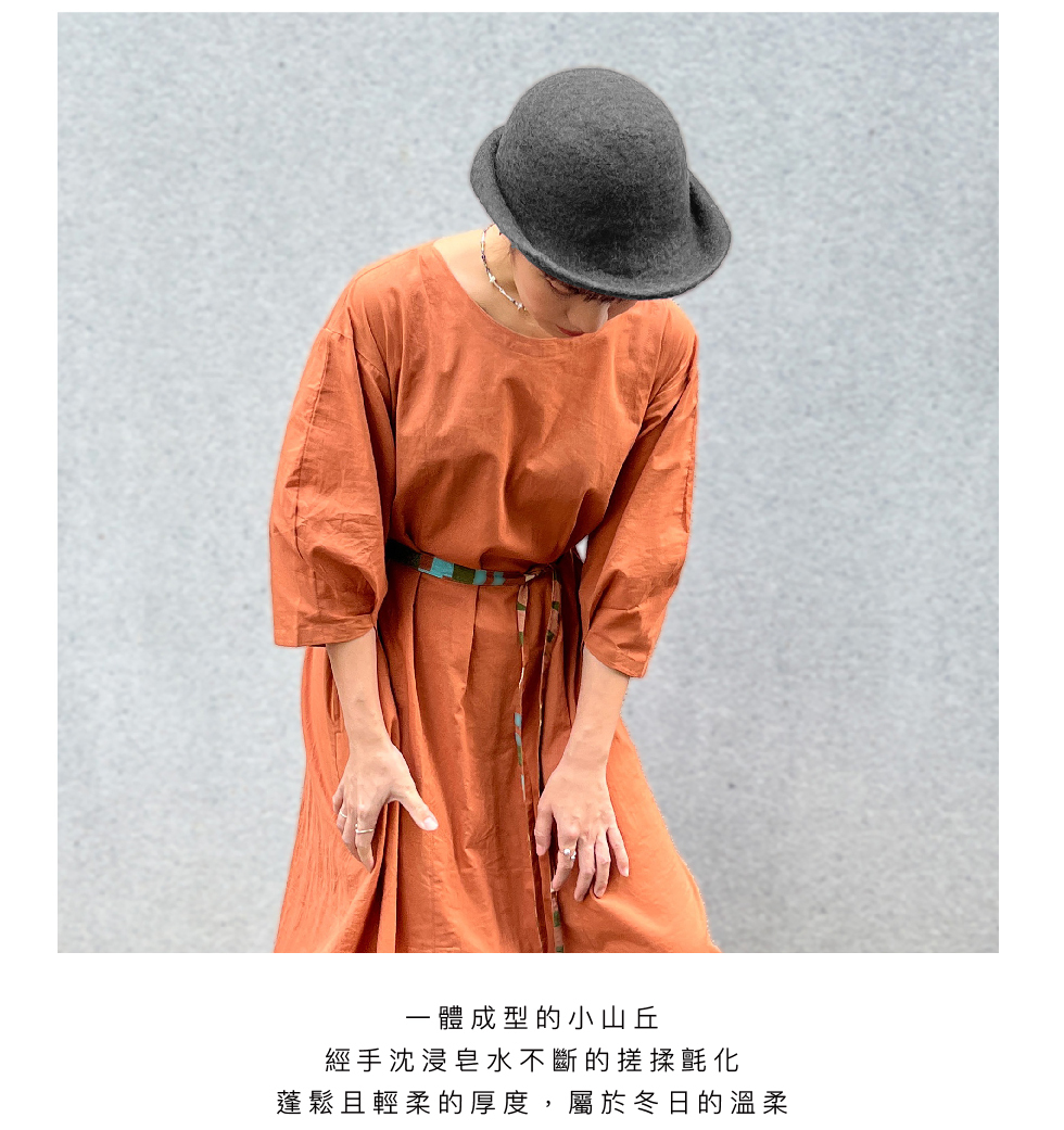 由公平貿易組織的婦女手工製作的羊毛氈帽,一體成型的簡約帽型,蓬鬆而輕柔的厚度,屬於冬日的溫柔。